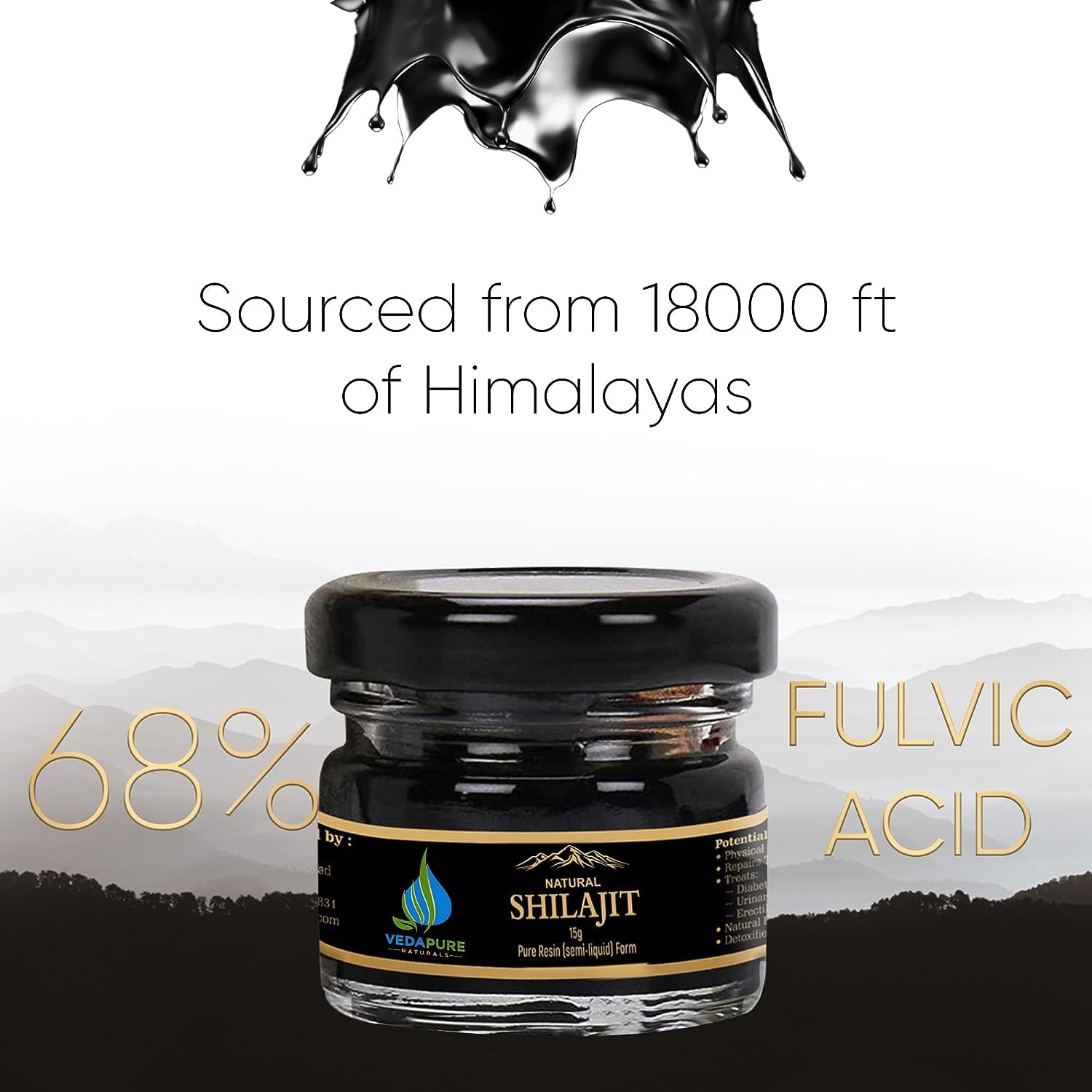 Vedapure Purest Himalayan Shilajit Resin 100% Pure Shilajit with Fulvic Acid & 85+ Trace Minerals Complex for Energy & Immune Support, 15 Grams