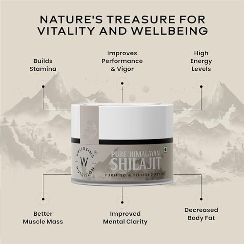 WELLBEING NUTRITION Pure & Natural Himalayan Shilajit Original Resin 20g for Strength, Stamina & Performance | Shilajit Resin for Men & Women with 75% Fulvic Acid & 85 Trace Minerals | Lab Tested