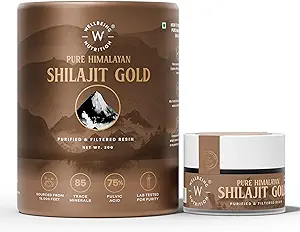 WELLBEING NUTRITION Pure Himalayan Shilajit Gold Resin for Strength, Stamina, Performance, Stress Relief and Vitality | Ashwagandha, Safed Museli & Swarna Bhasma (24K Gold Leaf) | Lab Tested - 20g