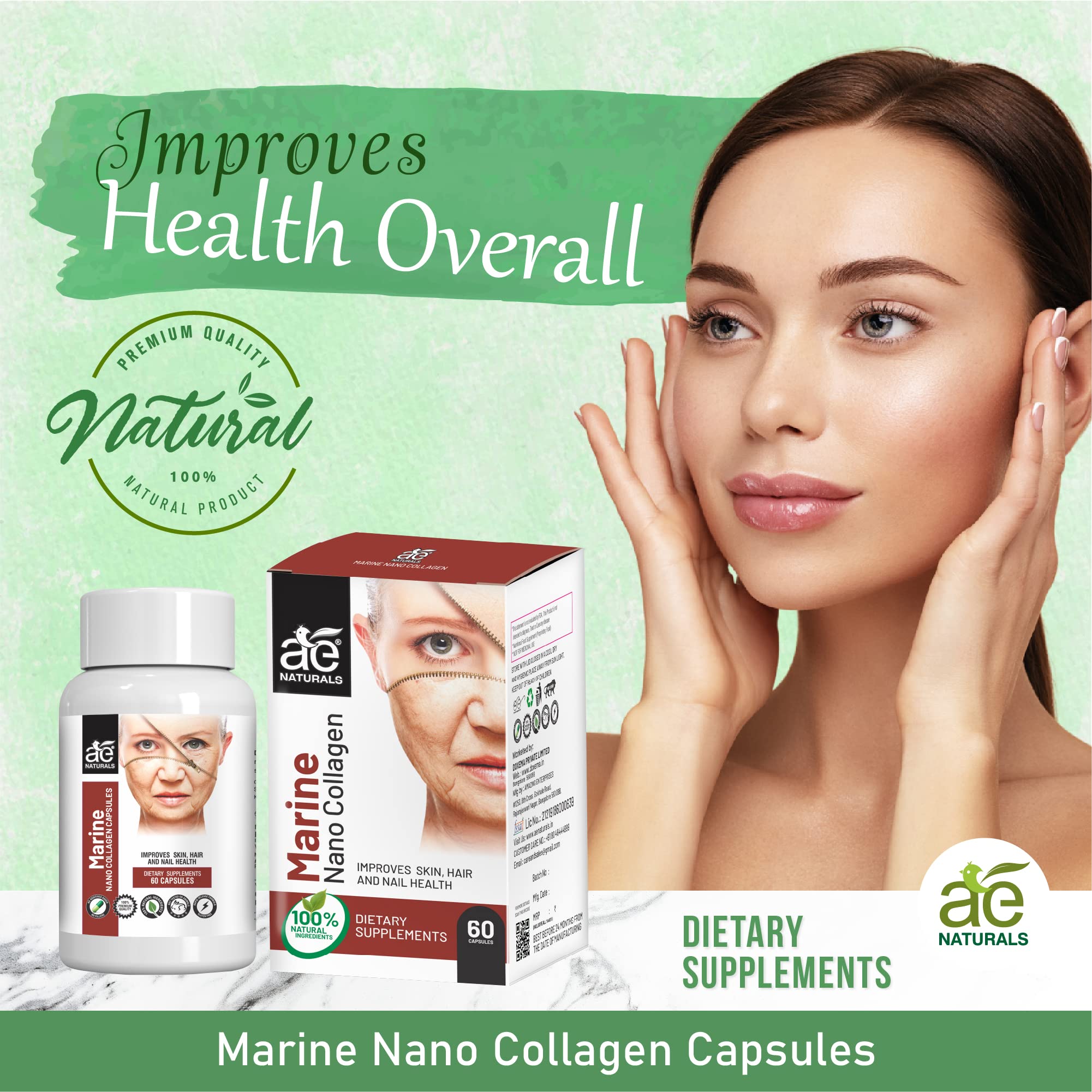 HomeHealth & PersonalDiet & NutritionHealth SupplementsAE NATURALS Marine Nano Collagen Capsules 60 Caps | Skin Health Anti-Aging Hair Nails and Joint Support | Improve Bone Density Reduce Wrinkles Promote Growth and Enhance Overall Vitality