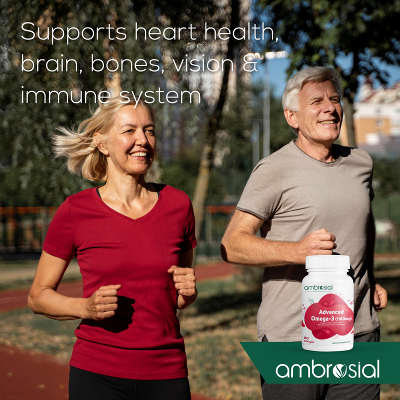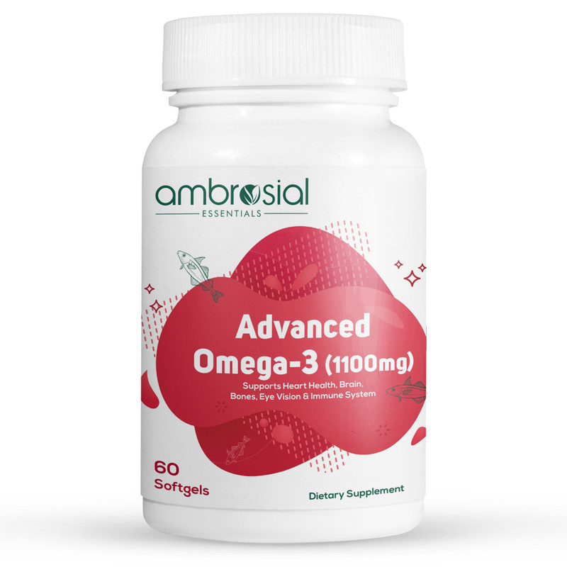 Ambrosial Advanced Omega-3 1100mg, Omega-3 Fish Oil EPA & DHA 60 Premium Softgels