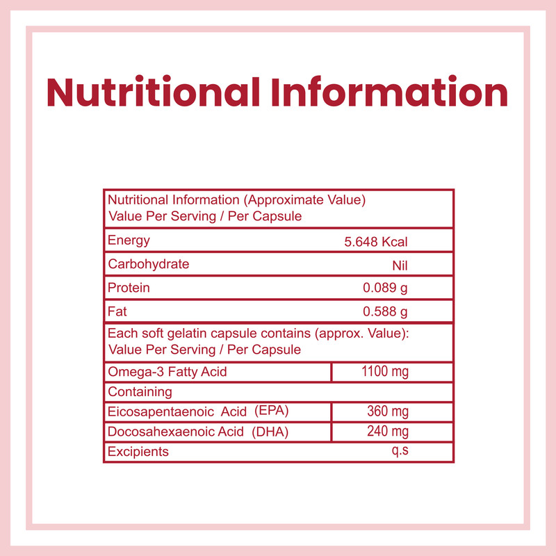 A daily serve of Ambrosials Advanced Omega-3 Fish Oil soft gel capsule offers you 1100 mg Omega 3 fatty acids (360 mg EPA and 240 mg DHA).