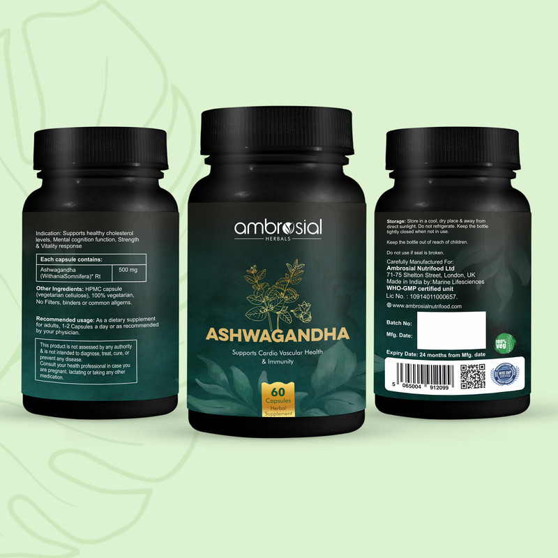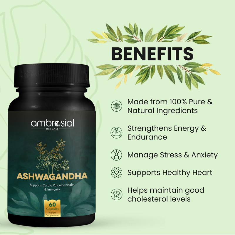 Extra Strength Formula:- Ambrosial s Ashwagandha provides 500 mg per veg capsule of high-quality Ashwagandha herb. Ashwagandha is known as an Adaptogenic herb, as it helps the body cope and adapt to various stresses that occur in daily life.