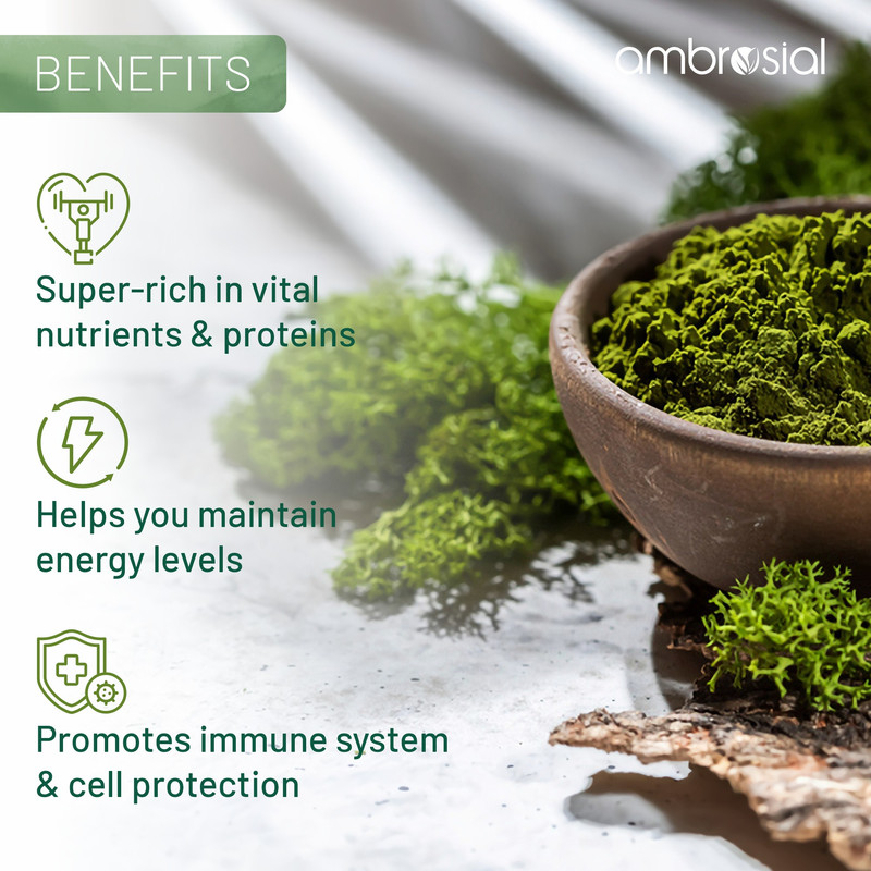 Spirulina is a perfect vegan protein source as it has the highest concentration of Protein than any other plant or animal. It contains a powerful plant-based protein called phycocyanin