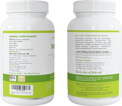 Vishnu 22/12/2023 Advantages The tablets of Moringa by Attar Ayurveda will nourish my hair and skin, protect my liver prevent arthritis. Already using very good product, more Comment Contains many vitamins and minerals. more