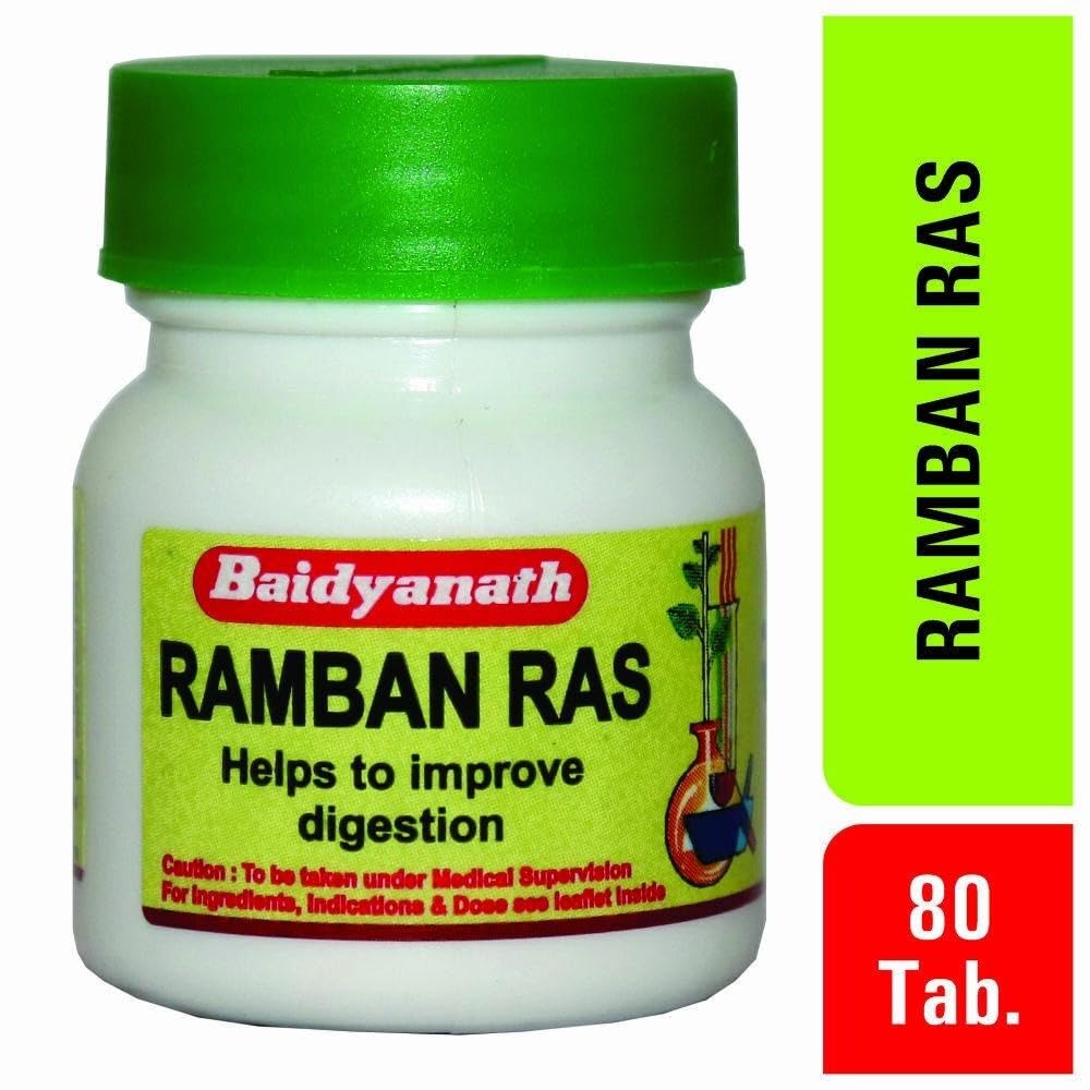 Baidyanath Ramban Ras-80 Tab (Pack Of 2). One of India;s most respected Companies Shree Baidyanath Ayurved Bhawan Pvt. Ltd. (Nagpur) popularly known as Baidyanath is the acknowledged leader of Ayurvedic know-how. Established in 1917 the Company has played a pioneering role in re-establishing ancient knowledge with modern research and manufacturing techniques. AYURVEDA is a 5000 year old Science of health care and herbal treatment. AYURVEDA is highly effective in common and complicated ailments assures long term relief and has no side effects. AYURVEDA is now backed by modern scientific research and technologies and provides its gentle healing touch to millions around the world.