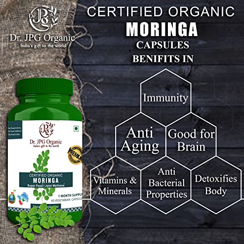 Dr. JPG Organic Moringa Capsules For Joint Wellness Super Food 120 Veg Capsules/INDIA ORGANIC Certified (Pack Of 1)