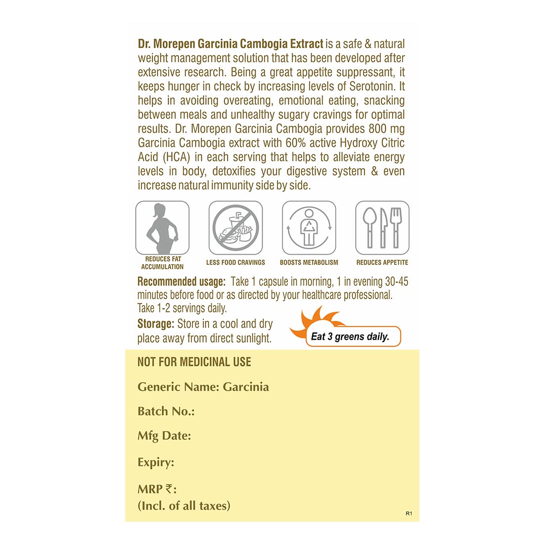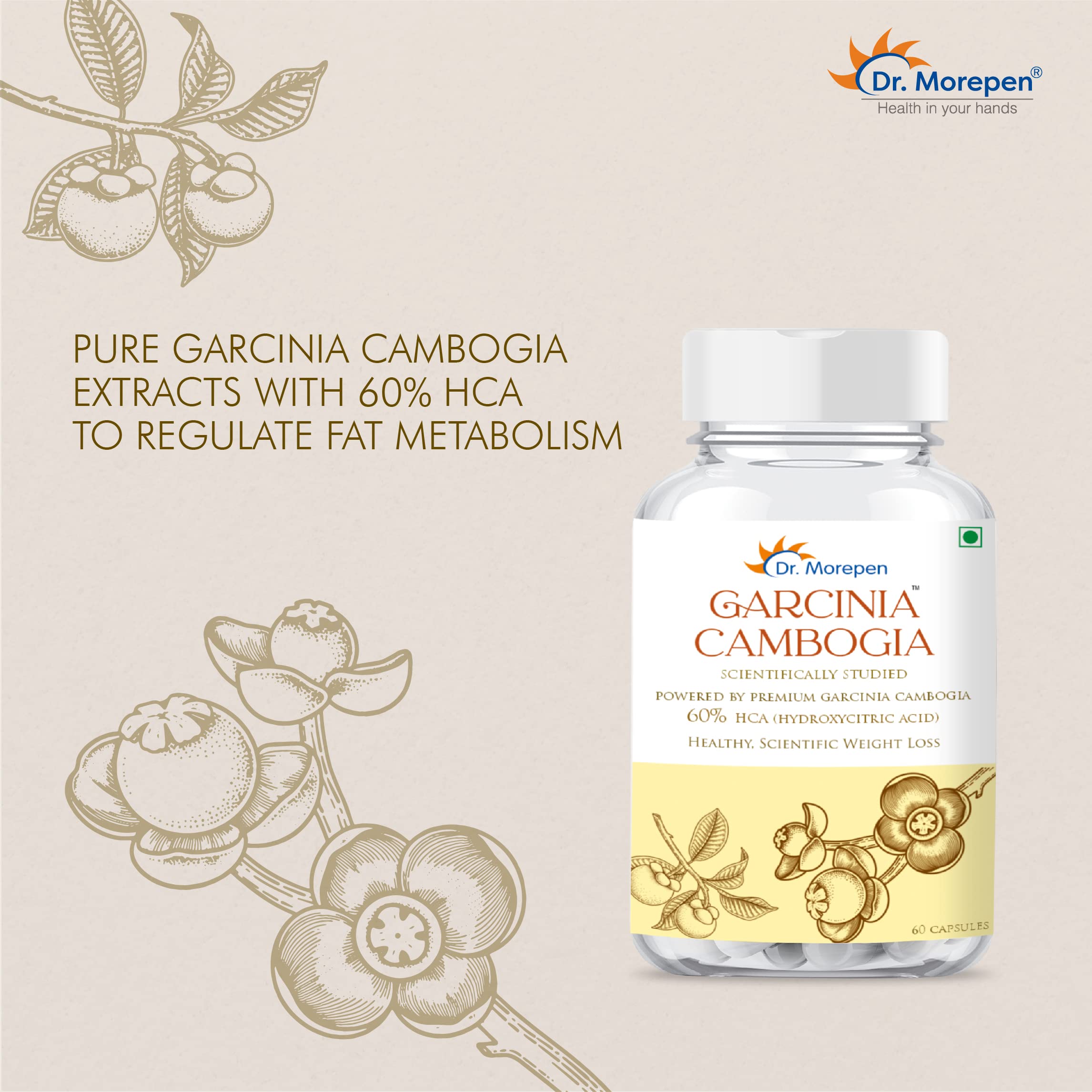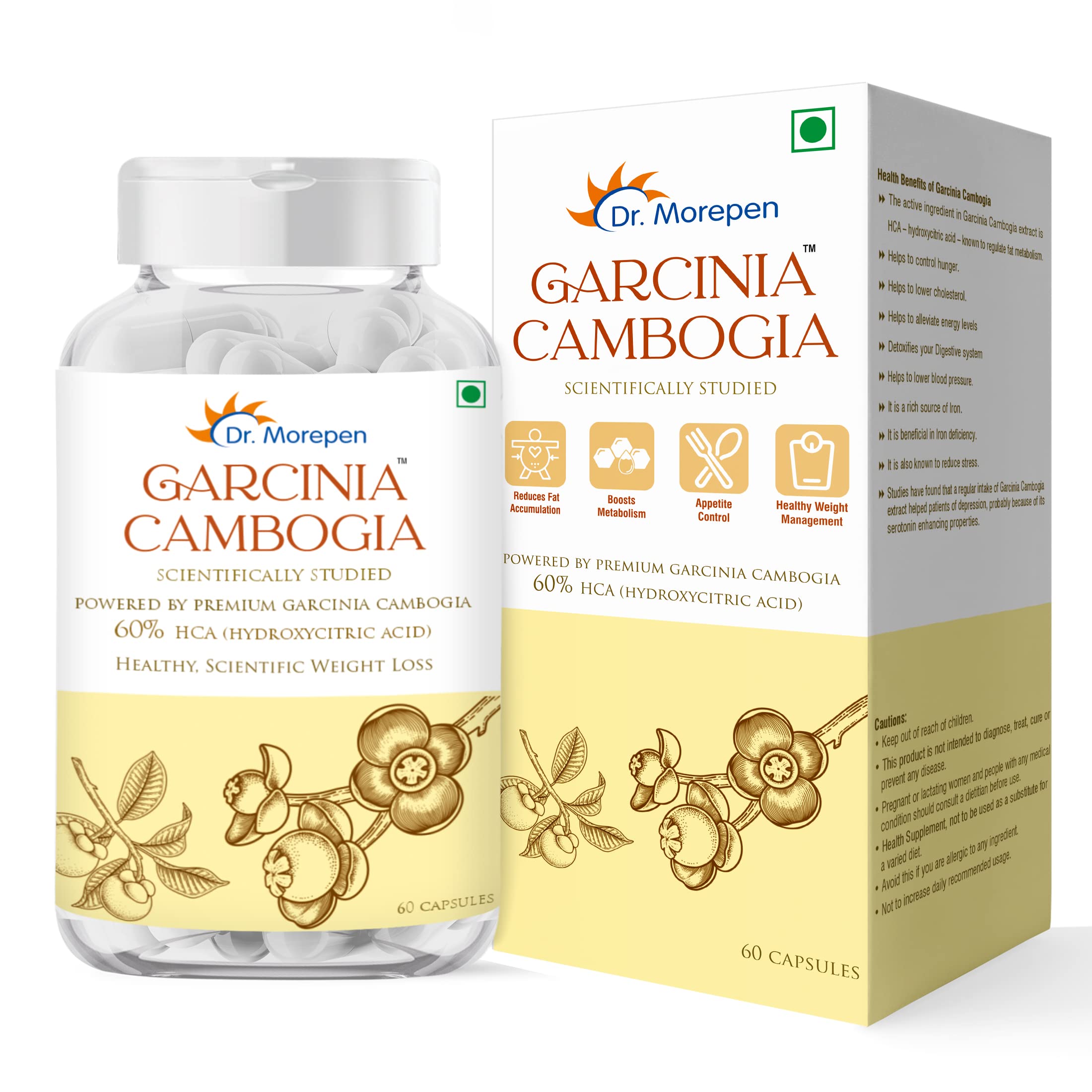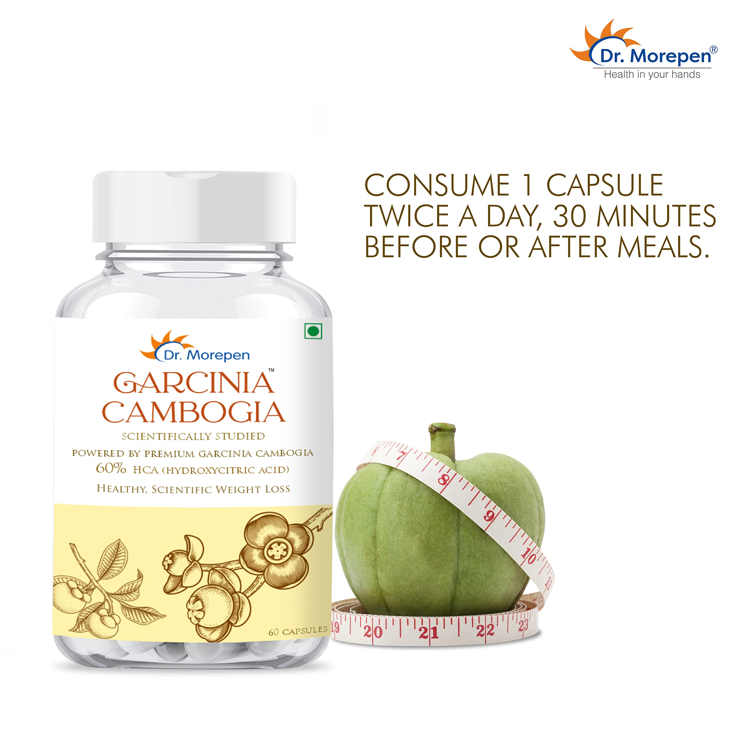 DR. MOREPEN Garcinia Cambogia | 100% Pure & Natural Appetite Controller | 800mg With 60% HCA - 60 Veg Capsules