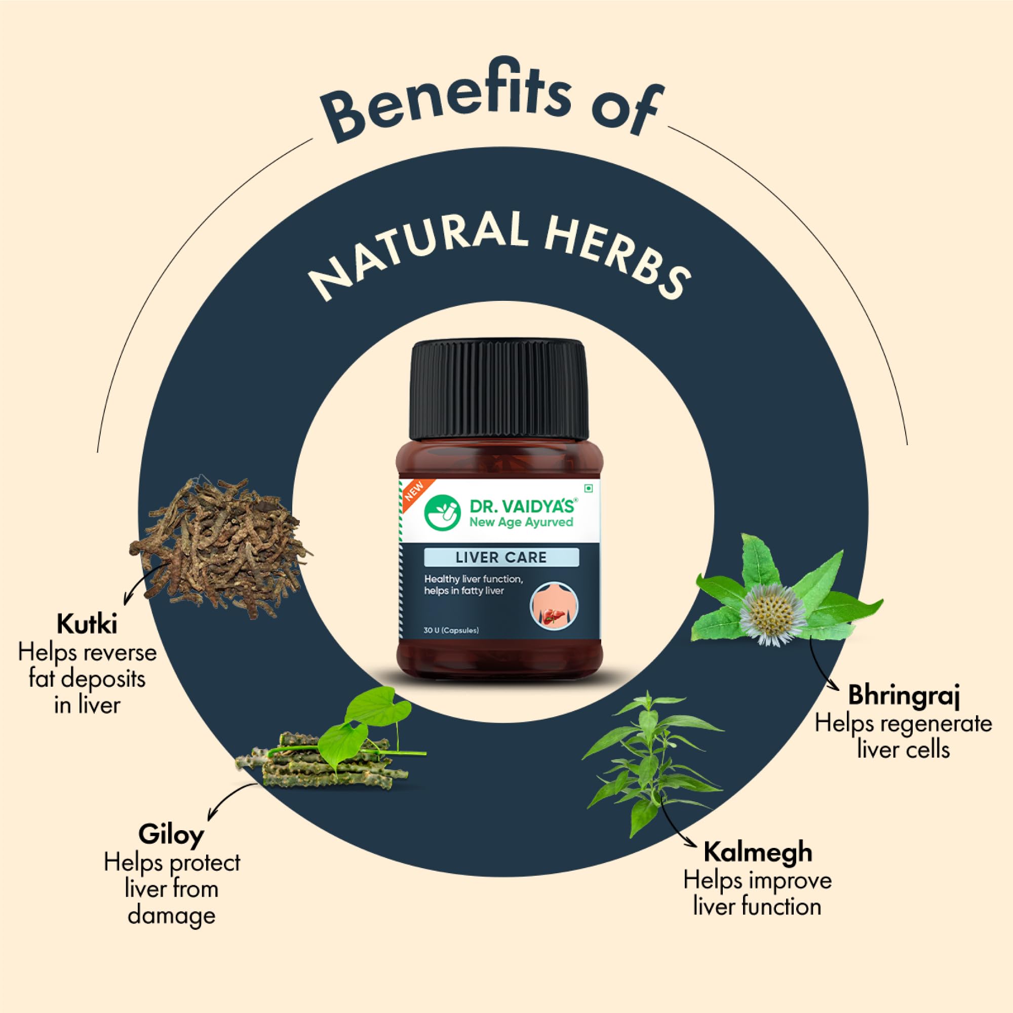 Dr. Vaidya's Liver Care Capsules | Helps With Liver Detox | Natural Ingredients Bhringraj Wheatgrass Juice & Ginseng | FDA Approved | 30 Capsules (Pack of 1)