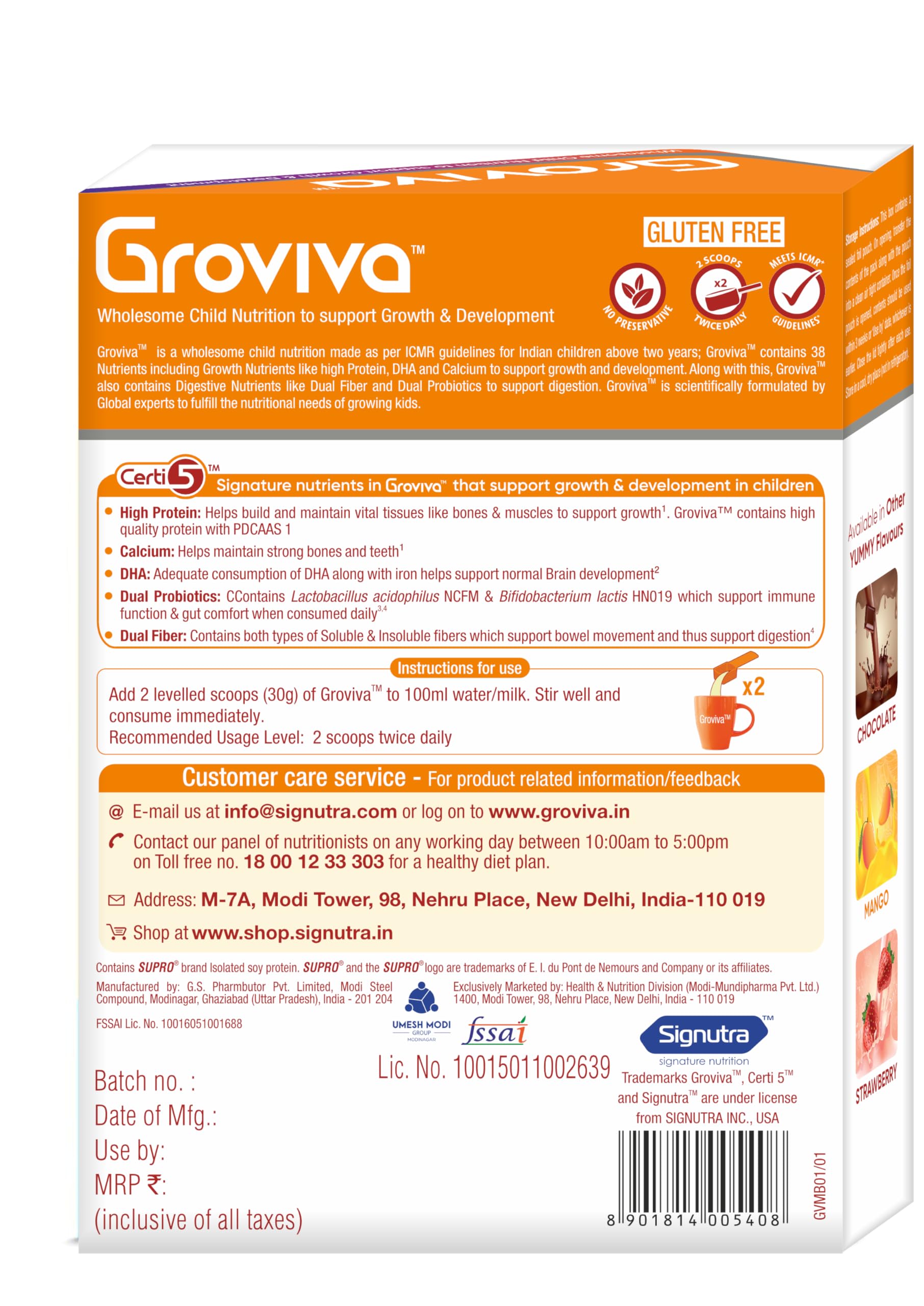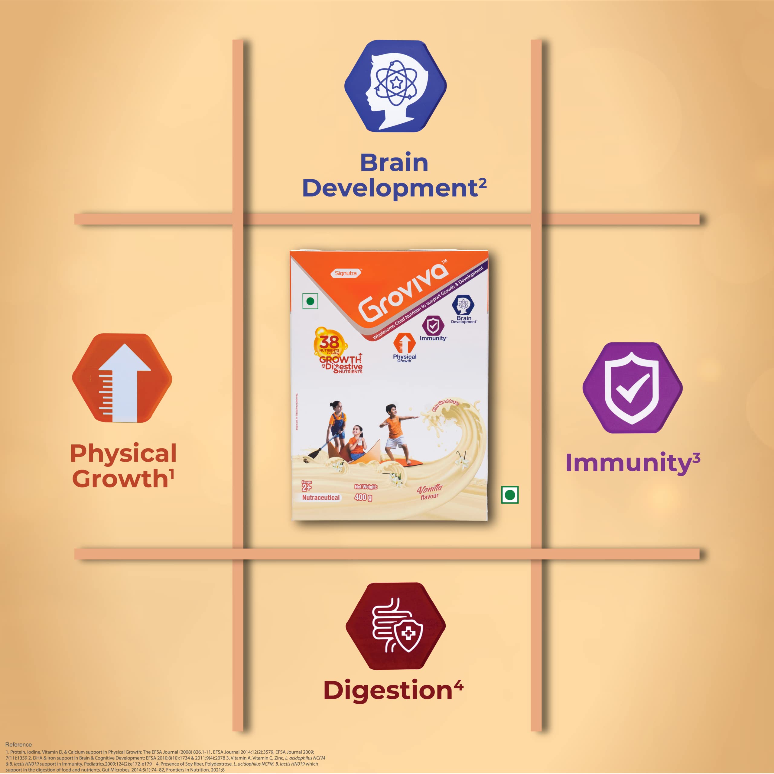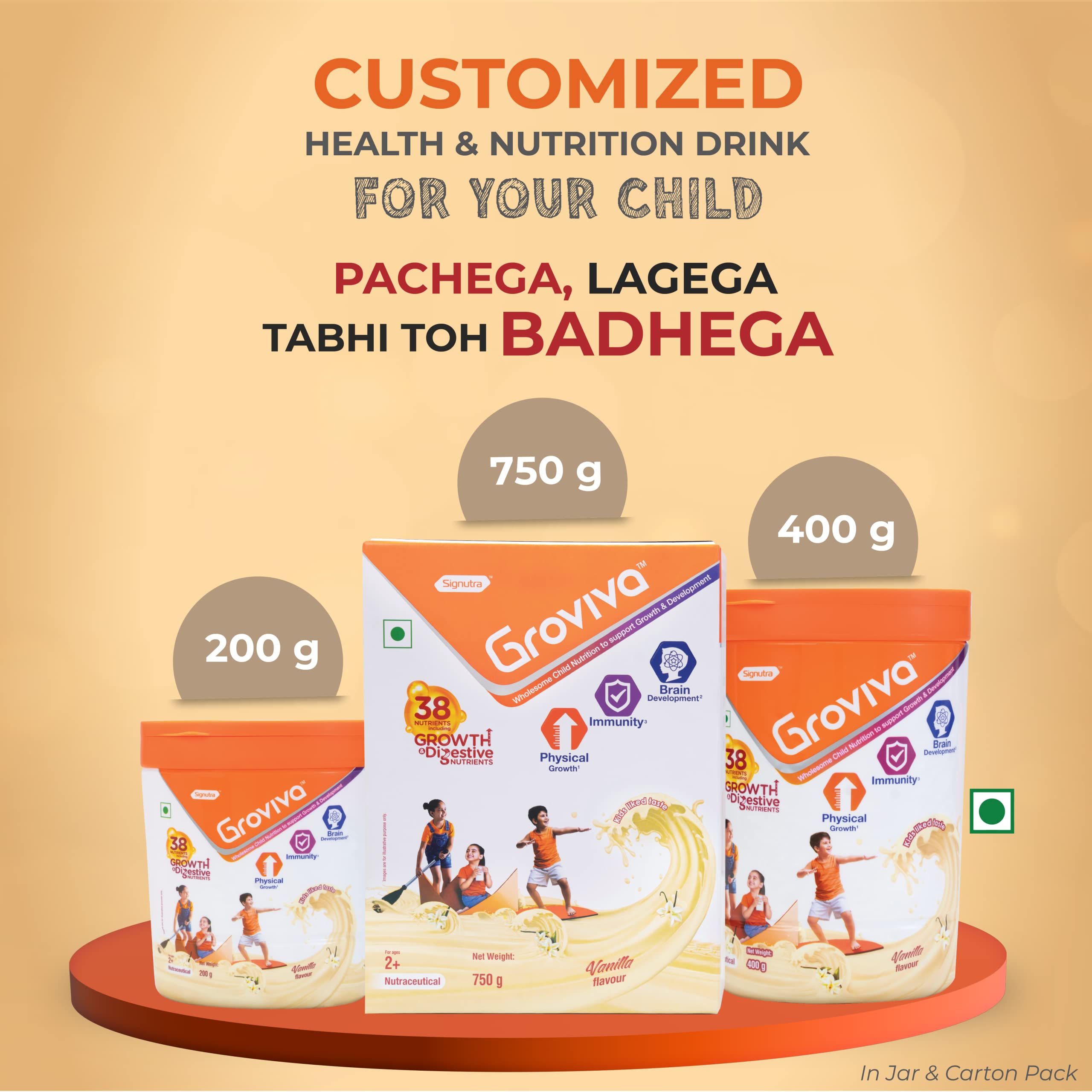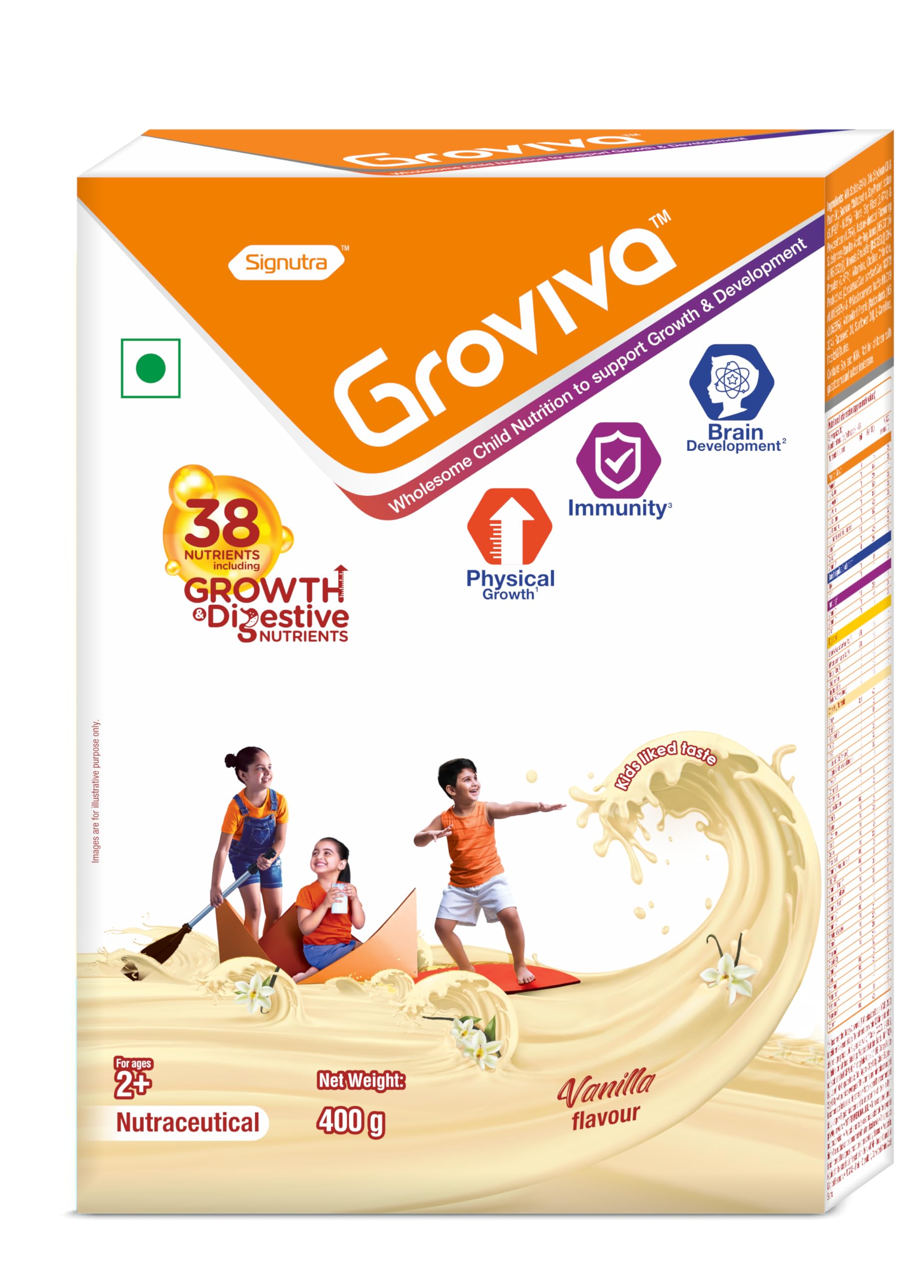 GrovivaTM is a customized wholesome child nutrition brand made as per ICMR guidelines . GrovivaTM is scientifically formulated with 38 key nutrients wherein Certi 5TM signature nutrients support the daily nutrition in children.