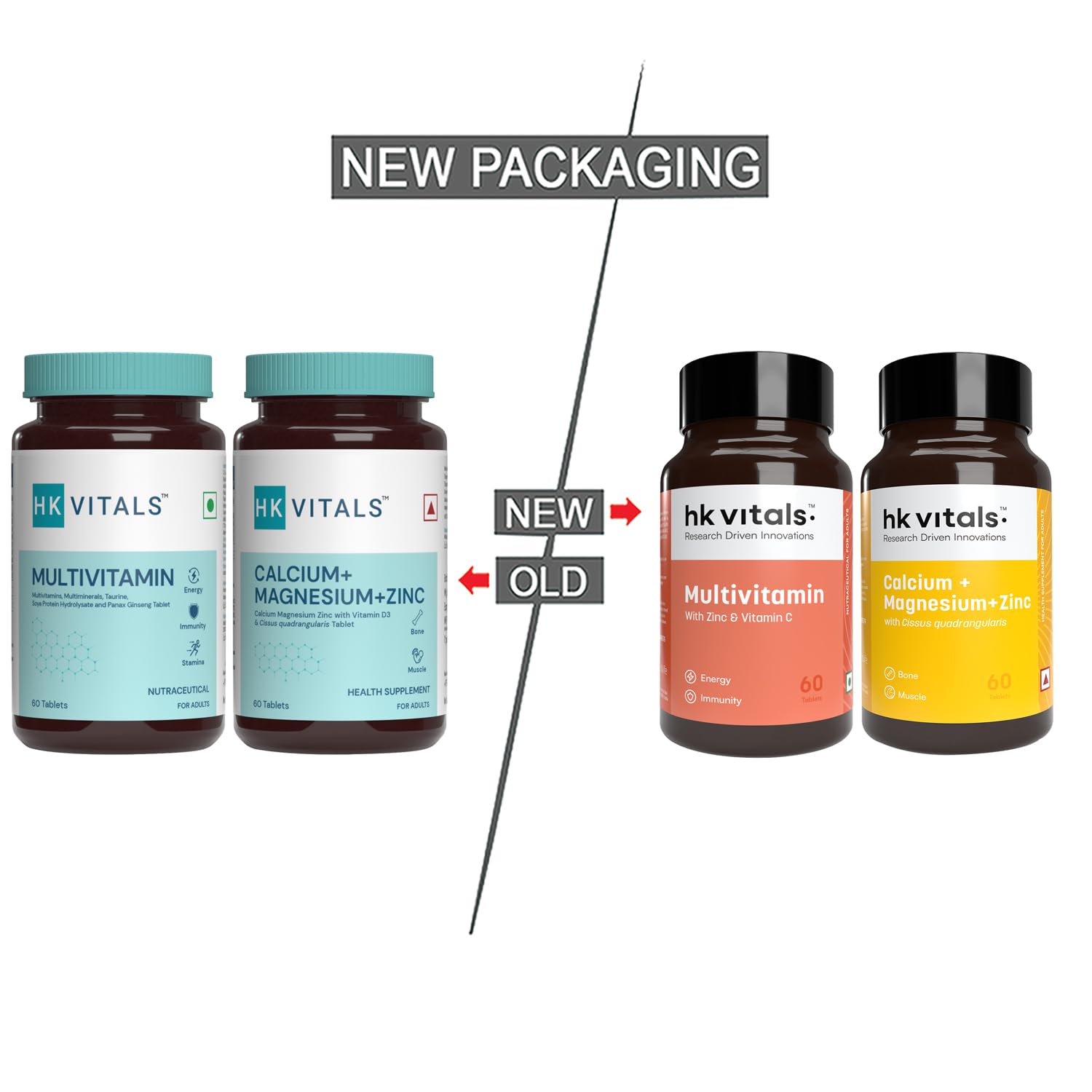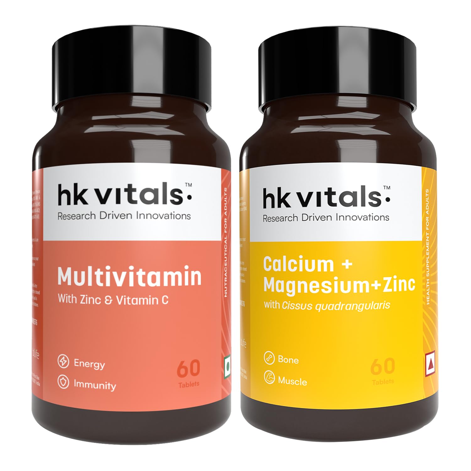 HealthKart Hk Vitals Multivitamin & CalciumMagnesium And Zinc Combo Pack|For Men And Women|With Vitamin CVitamin D3Multiminerals & Ginseng Extract2 Count60 Capsules