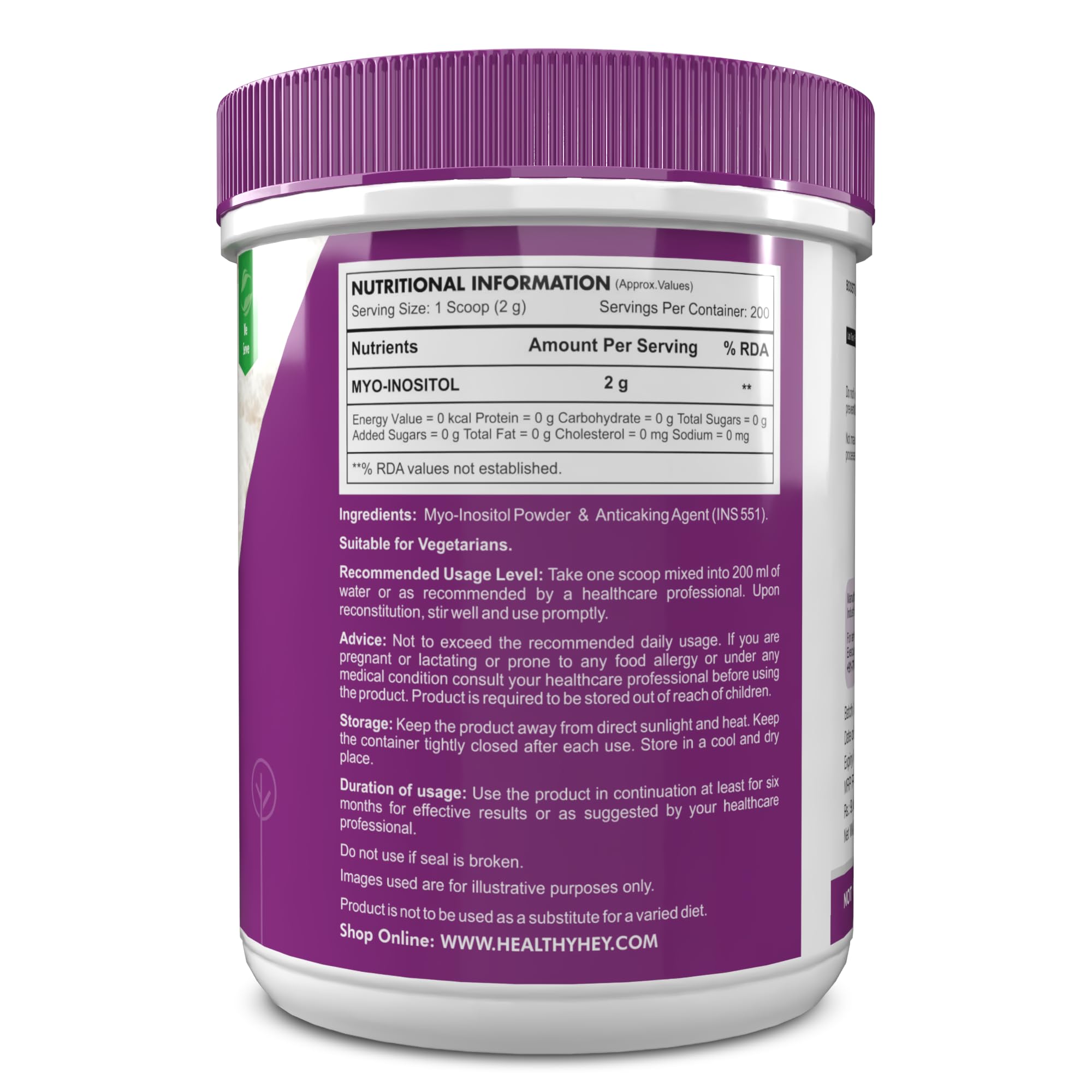 Healthyhey Nutrition 100% Pure Myo Inositol Powder (Vitamin B8) 400gm pack