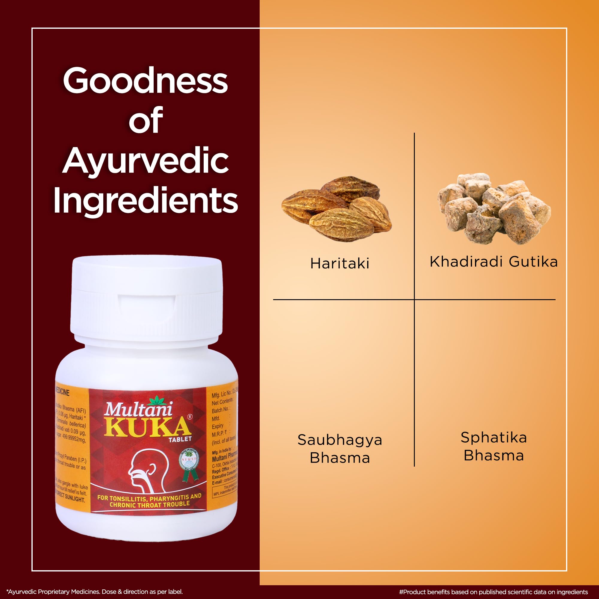Safe & Effective Multani Kuka Tablet Is An Ayurvedic Medicine Helps To Eliminates Sore Throat Throat Dryness & Soreness. Multani Kuka Tablet Is Must Have For Every Teacher Singer Or Coach.