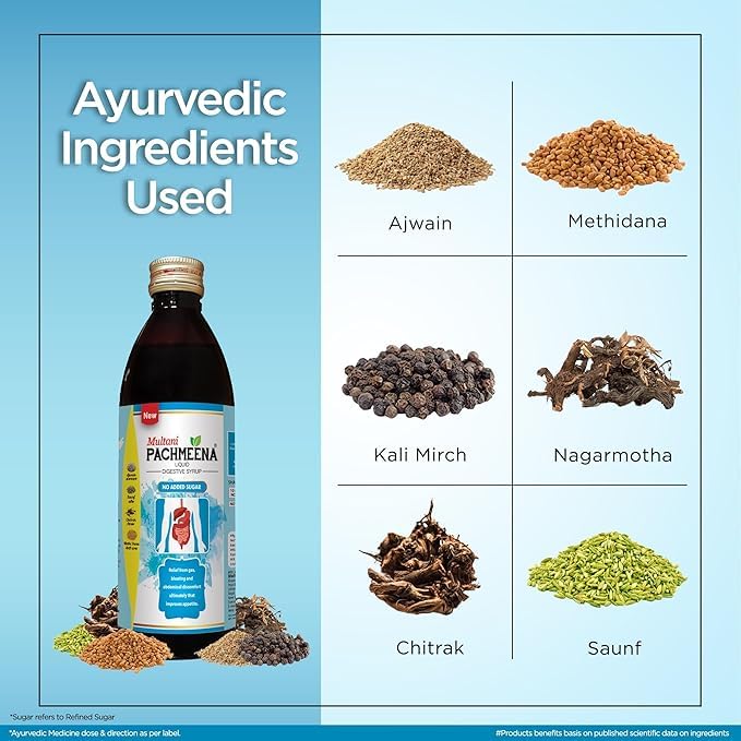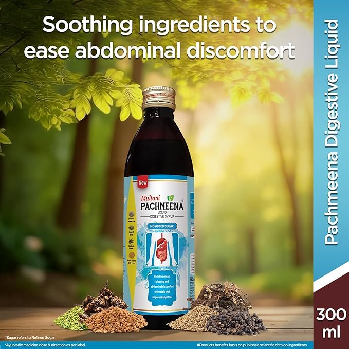 Multani Pachmeena Digestive Liquid Sugar-Free is a herbal digestive tonic formulated to support healthy digestion and relieve common digestive issues. It is enriched with natural ingredients known for their digestive and carminative properties making it an effective solution for bloating indigestion acidity and gas. This sugar-free formulation is ideal for individuals who need to manage their sugar intake such as diabetics or those following a sugar-restricted diet. The unique blend of herbs works synergistically to improve digestion promote appetite and maintain a healthy gut. Multani Pachmeena Digestive Liquid is made with Ayurvedic herbs such as Saunf (fennel) Jeera (cumin) Pudina (mint) and Ajwain (carom seeds) which are traditionally used to ease digestive discomfort. It also helps regulate bowel movements and prevents constipation. This herbal tonic is suitable for daily use and is free from harmful chemicals or artificial additives. Regular consumption can enhance digestion prevent acidity and promote overall gut health naturally.