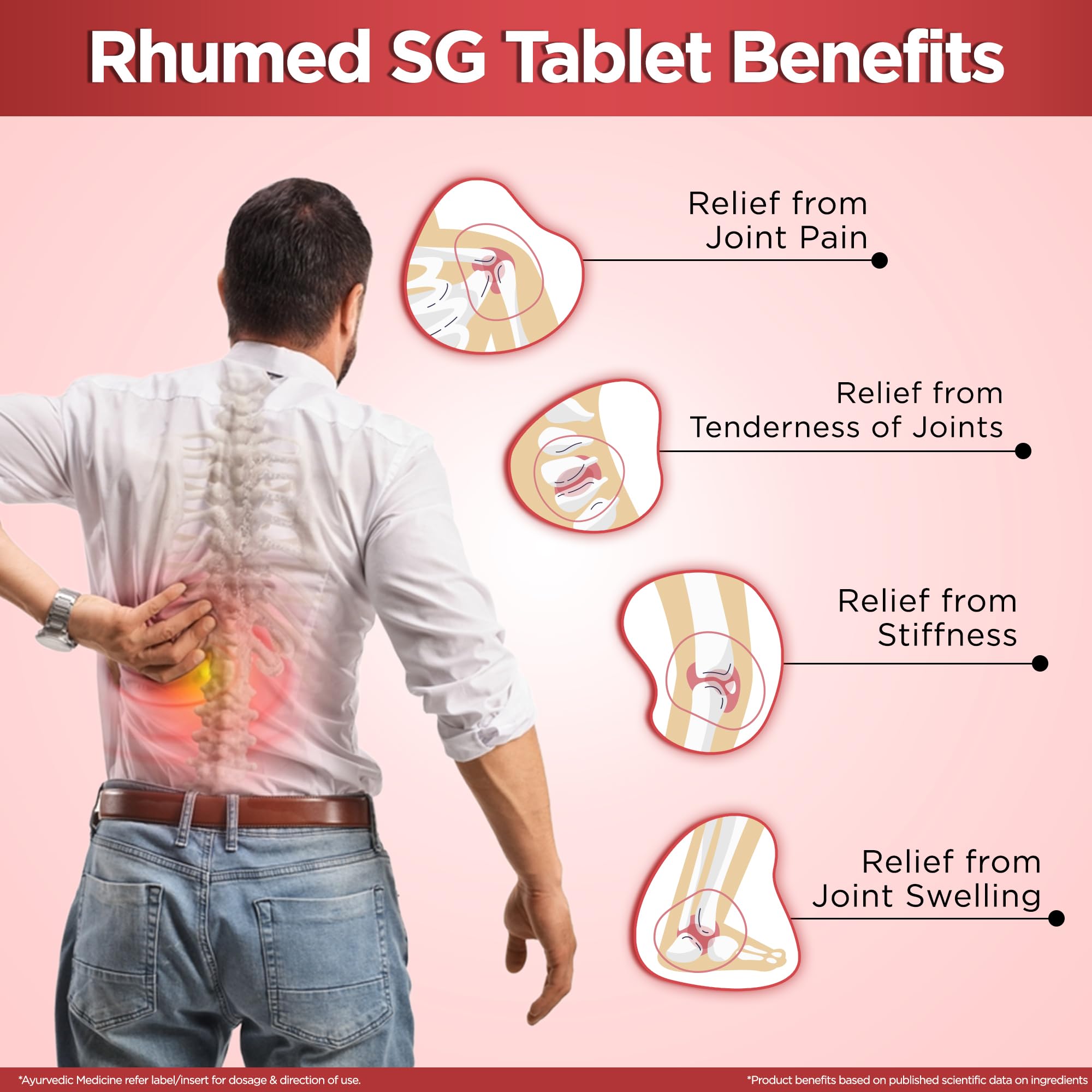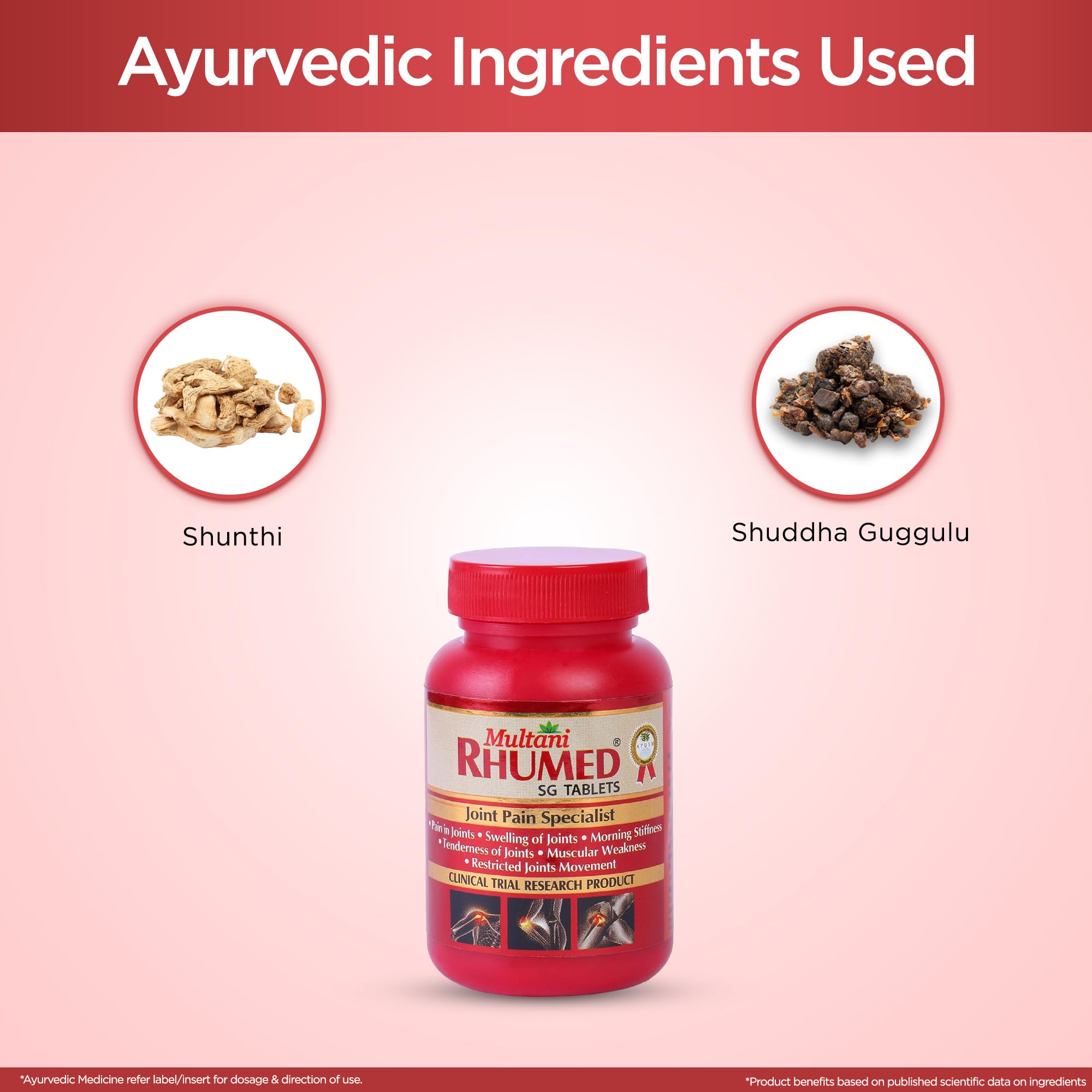 Multani Rhumed SG Tablets - 60 Tablets | Useful In Relief From Pain In Joints Joints Swelling Stiffness & Tenderness | Clinical Trial Research Product | Pain Relief