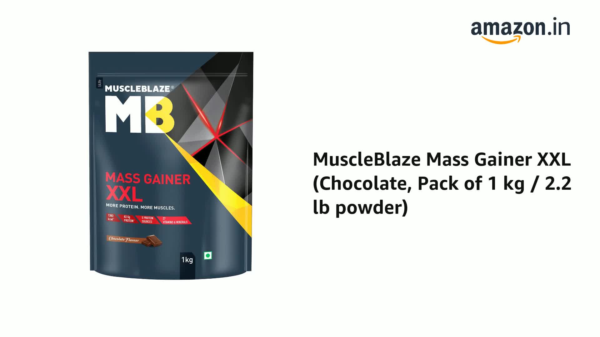 MuscleBlaze Mass Gainer XXL (Chocolate, 1kg / 2.2lbs, 10 Servings) | With Complex Carbs, High Protein & Digestive Enzymes