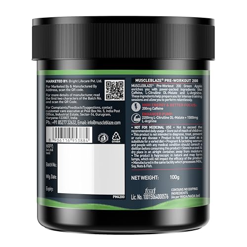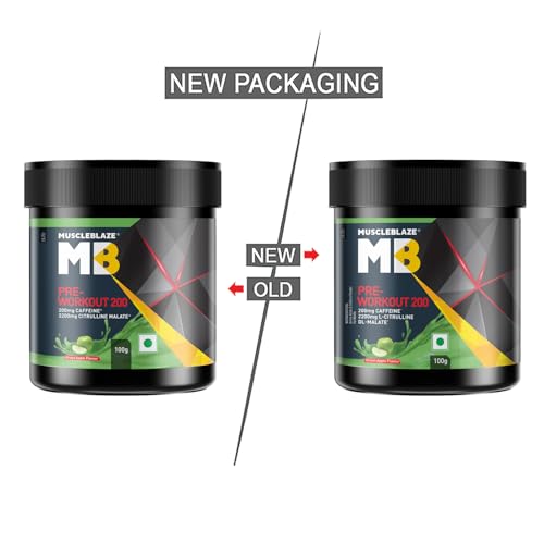 MuscleBlaze Pre Workout 200(Green Apple,20 Servings,100 G)| 200 Mg Caffeine,2200 Mg Citrulline Powder,1 Count