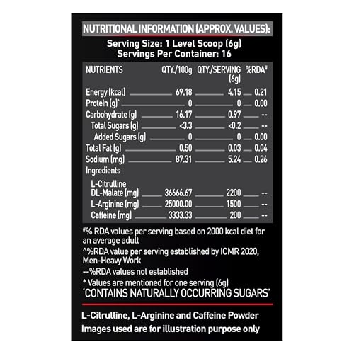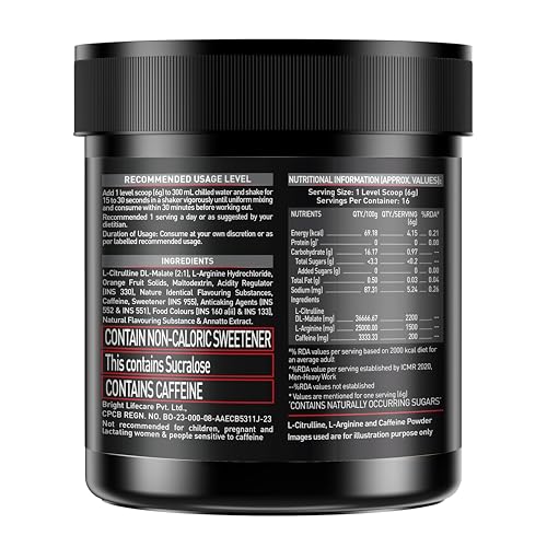 • POWER-PACKED FORMULA: Transform your fitness workouts with MuscleBlaze Pre-Workout 200. Every 5g serving contains 2200mg L-Citrulline & 1500mg L-Arginine to enhance blood flow in the nerves & boost pump