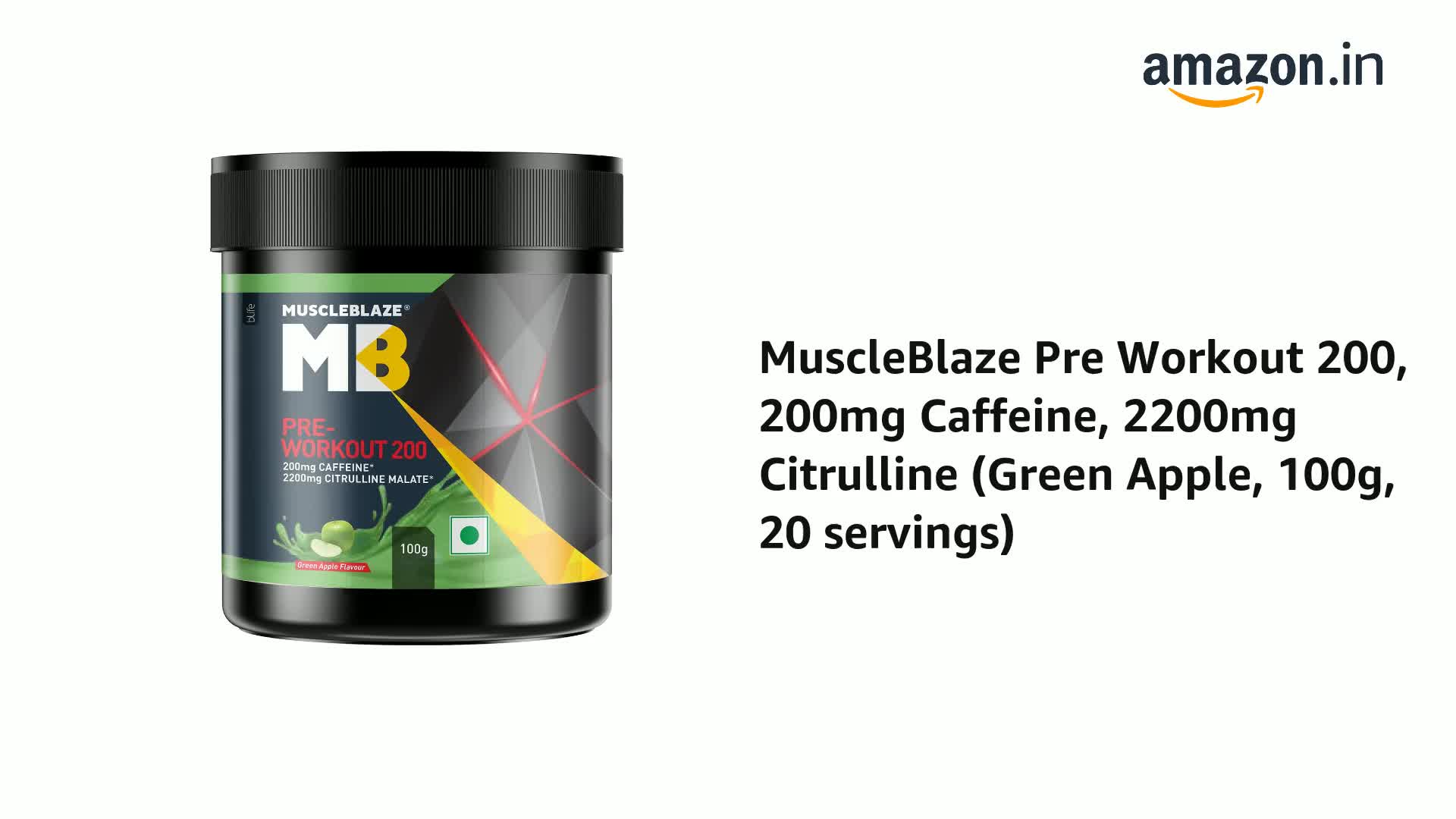 • SCRUMPTIOUS FLAVOURS: MB Pre-Workout 200 is available in two refreshing flavours- Fruit Splash and Green Apple. Conquer your workouts with ease with the help of MuscleBlaze pre-workout drink mix to fulfil your fitness goals