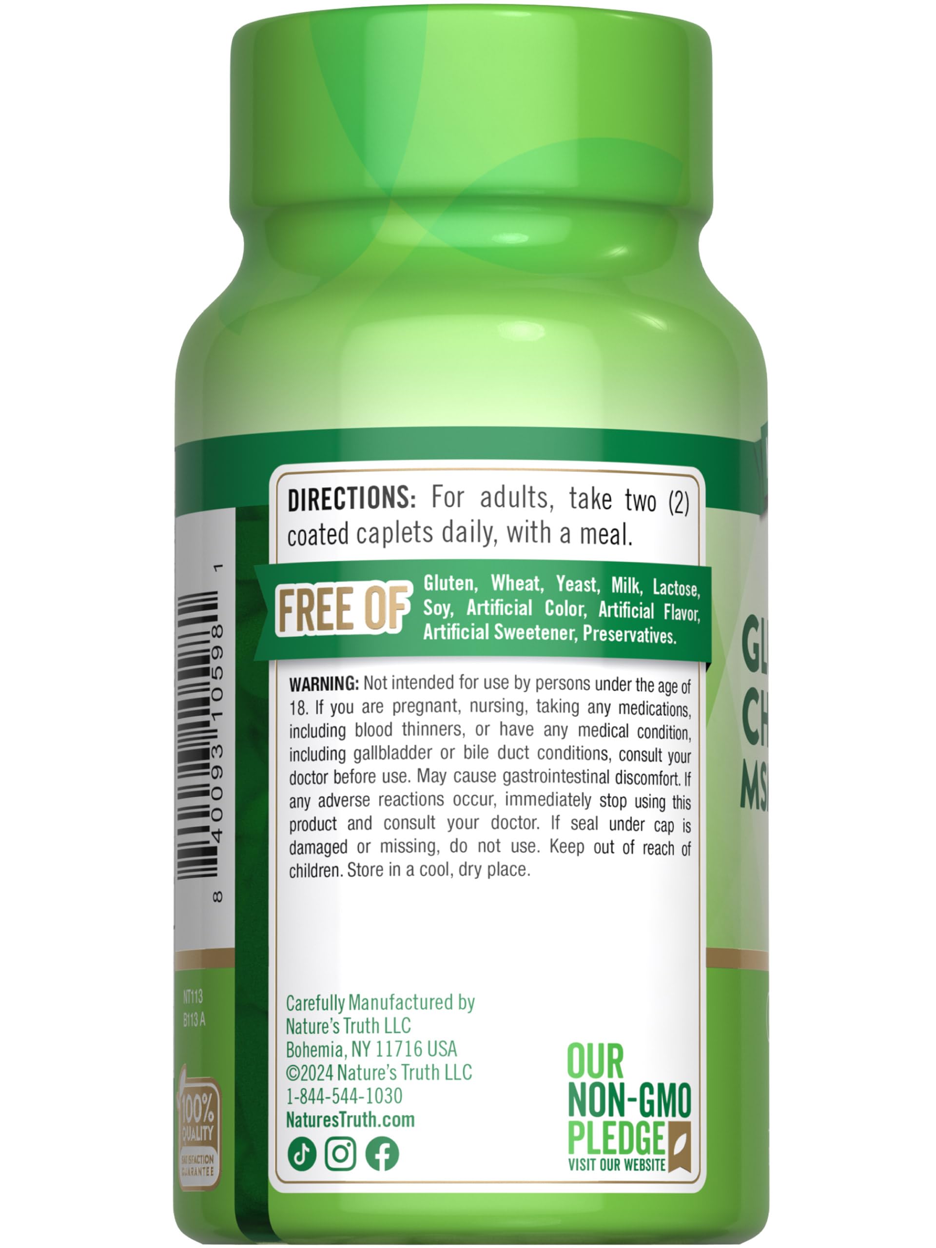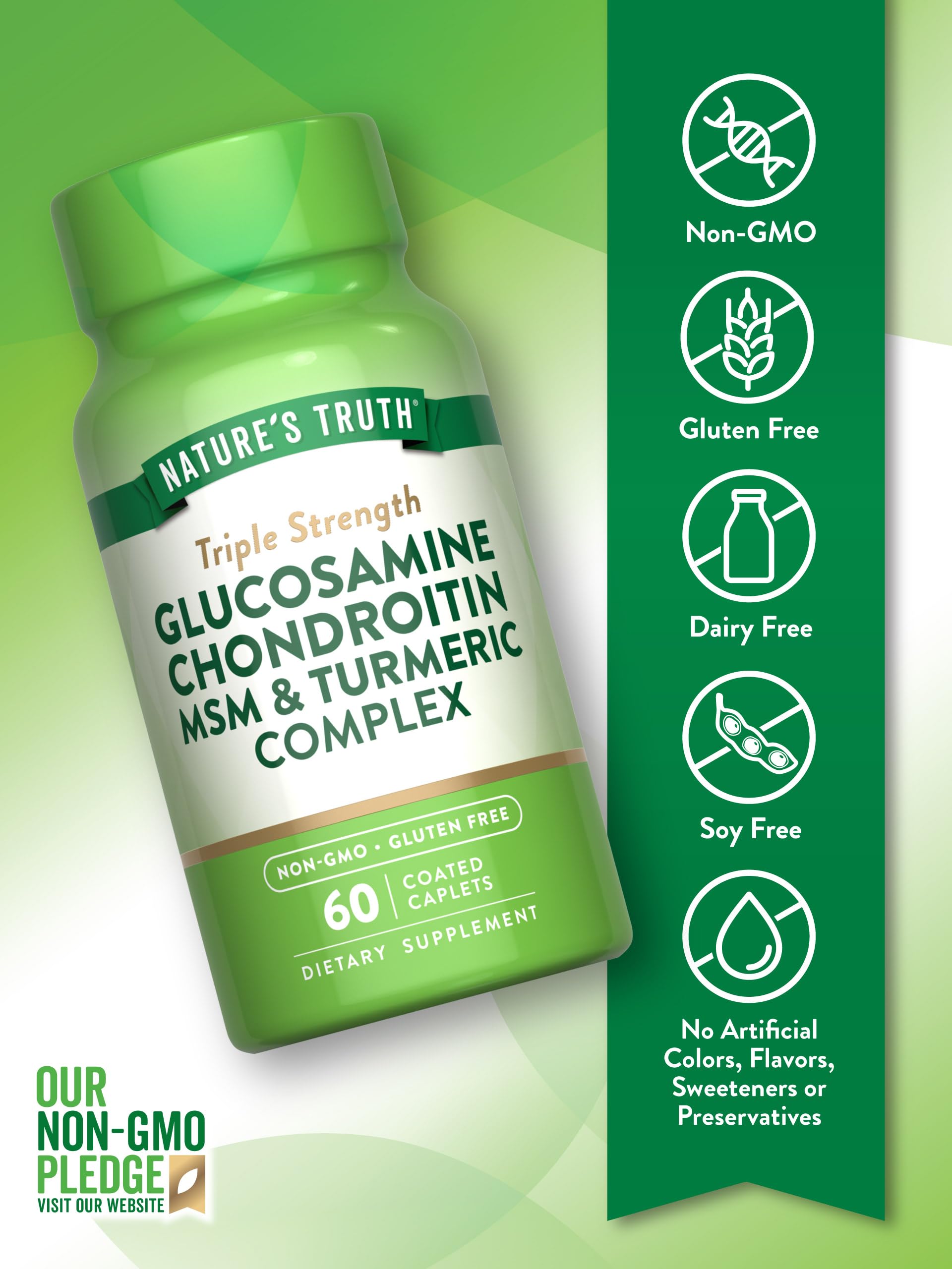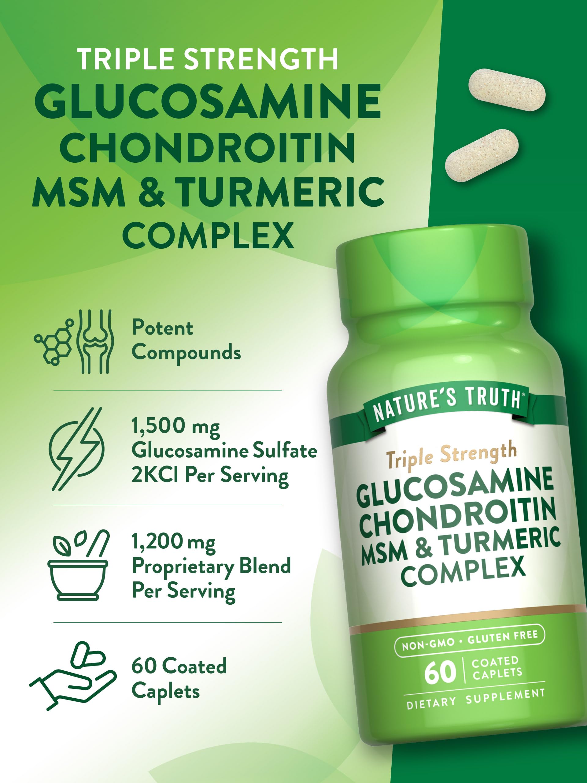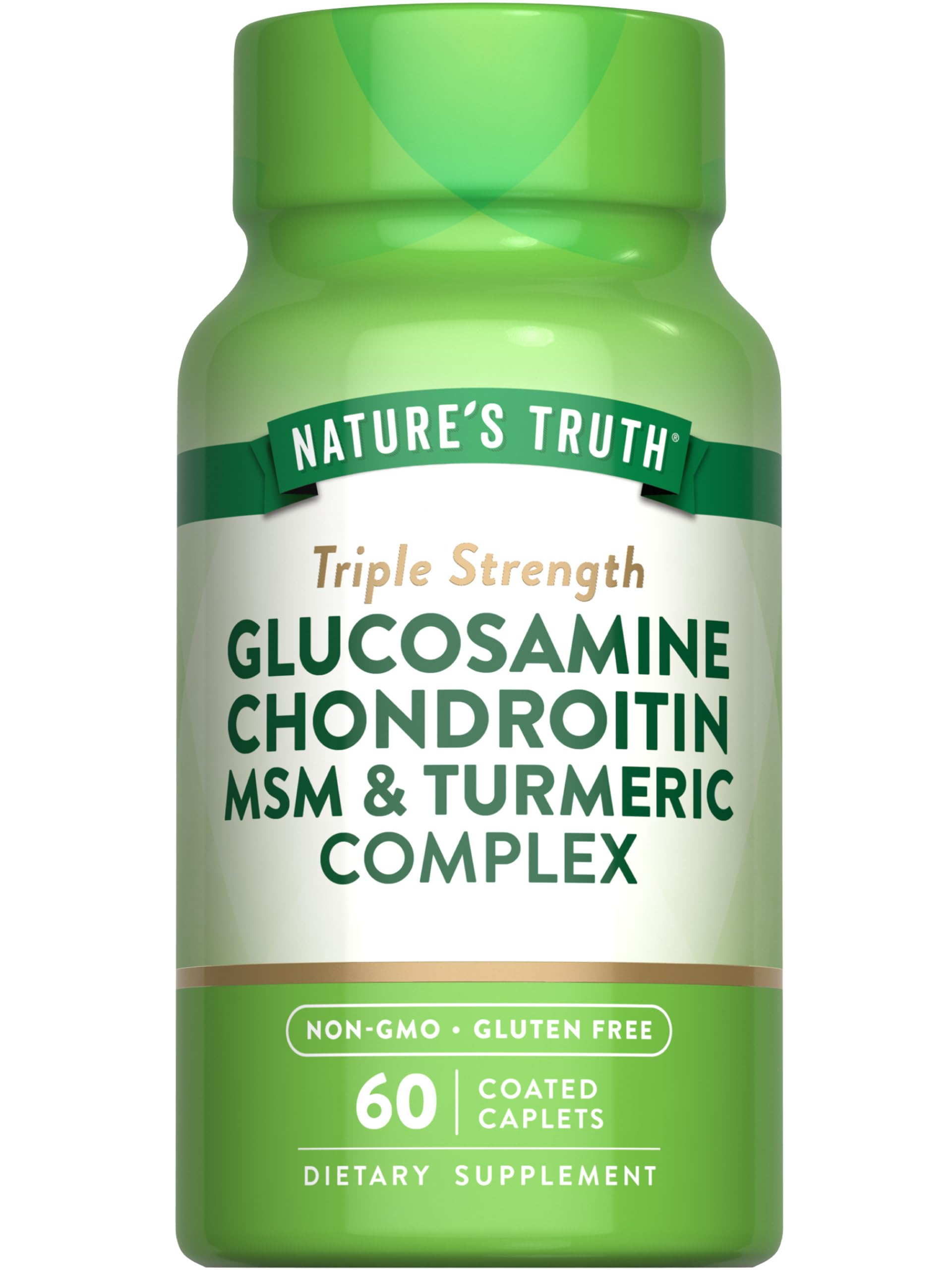 Nature's Truth Glucosamine Chondroitin MSM Complex | 60 Caplets | Triple Strength Supplement with Turmeric | Non-GMO and Gluten Free Supplement