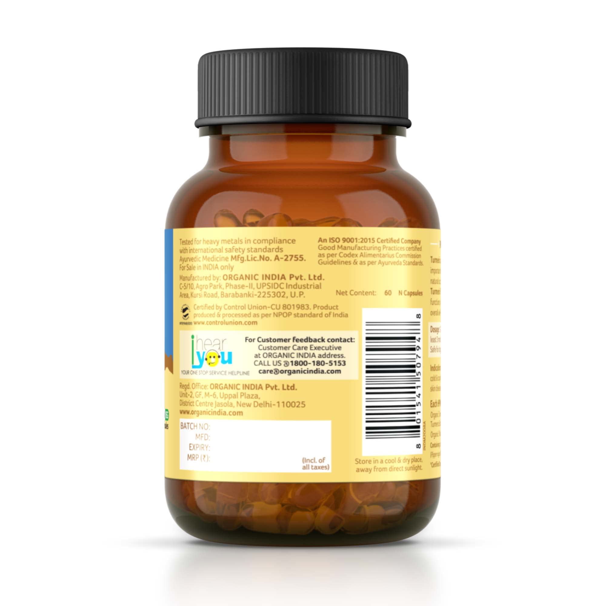 Organic India Turmeric Bottle | Strong anti-inflammatory | Enhances Skin, Bone, and Joint Health - 60 Capsules