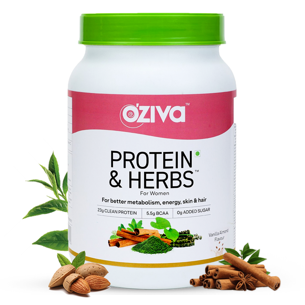 OZiva Protein & Herbs For Women:OZiva Protein & Herbs For Women is great for healthy hair, younger-looking skin, boosting metabolism, and reducing body fat.Soy-freeGluten-freeNon-GMONo sugarNo trans fatLactose-freeNo preservativesNo artificial sweetenersIngredients:ShatavariGuduchiFlaxseedGreen TeaCurcuminTulsiCinnamonUsage: Mix 1-2 scoops in 200ml water. Shake well. Enjoy your drink.Flavour: Mango/ Vanilla Almond/ Chocolate/ Cafe MochaManufacturer: OZivaQuantity: 500 Grams /1kgNote: May contain additional ingredients. The product description is for information purposes only and it is always better to consume/use products after reading the labels on the products or as prescribed by the physician.Legal Disclaimer: Statements regarding dietary supplements have not been evaluated by the FDA and are not intended to diagnose, t