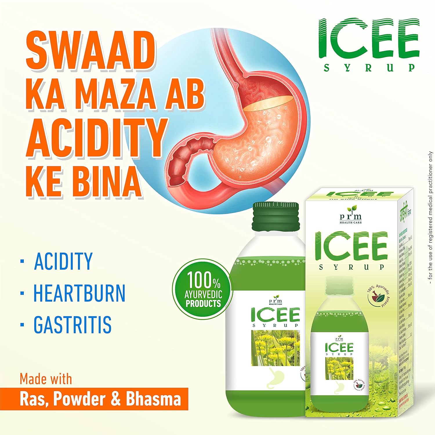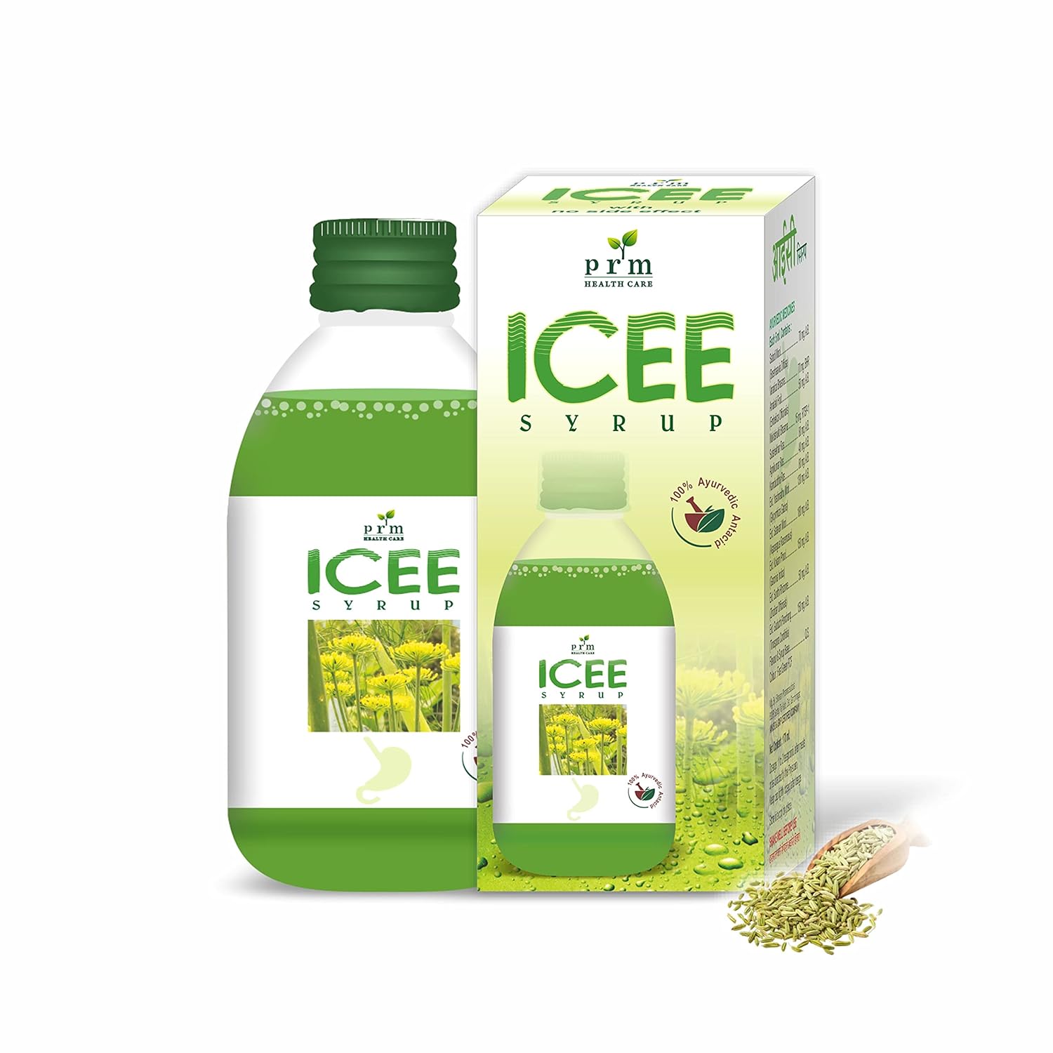 ICEE Syrup is a non-metallic antacid made of standard mixture of 12 ancient Herbs [RAS - POWDER - BHASMAS] like Amlaki, Kokam Phool, Satodi powder mool, guduchi panchang, Varatika Bhasma, Agnikumar Ras, Yeshtimadhu mool and many more. It is utilized in occurrence of Hyperacidity, Gastritis, peptic ulcers and flatulence.