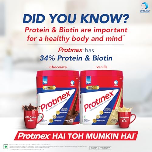 Protinex Creamy Vanilla is a vegetarian nutritional beverage mix that should be consumed daily as part of a healthy lifestyle for your everyday health. It is now clinically proven for strength and energy. It increases your strength and energy nutrients by 34%. With a rich legacy of over 65 years Protinex comes with high protein content (34g for every 100g) that helps you fight tiredness + fatigue and delights you with its rich creamy taste! Lack of protein leads to loss of muscle strength which in turn leads to frequent tiredness and fatigues in our daily lives. Protein makes up about 50% of muscles & bones in our body and our body cannot store protein â hence it needs to be consumed daily! Protinex helps in bridging this gap of protein and other essential nutrients in regular Indian Adult diets. Protinex should be consumed daily as part of a healthy lifestyle for everyday health. Protinex Creamy Vanilla is also enriched with calcium vitamin D and immuno-nutrients for your everyday health helping with stronger muscles & bones long-term immunity and stamina to power through each day.