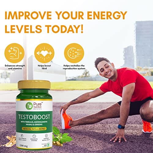 Pure Nutrition Naturals TestoSupplement For Men's that s energy levels for enhanced performance. It is infused with the Naturals al extract of Safed musali and Mucuna pruriens that serve as testosterone for men.