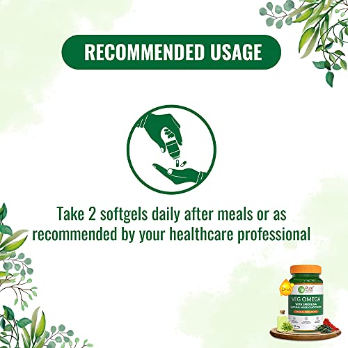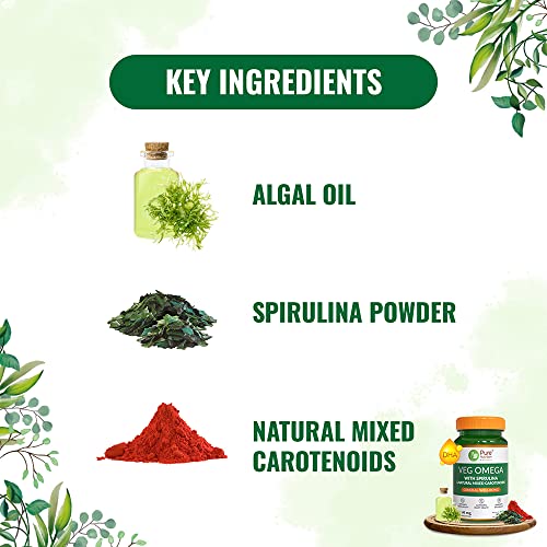 Pure Nutrition Veg Omega with Spirulina and Naturals al mixed Carotenoids offers pure vegetarian Omega-3 DHA 1000 mg per serving. It is obtained from microalgae the richest source of DHA which enters the fishes through the biological cycle. The supplement comes in a vegetarian Caps. with liquid Caps. fill technology. DHA helps in the healthy growth and functions of the brain and eyes. It is essential for neurotransmission that supports cognitive function and optimal visual functioning. The supplement o des powerful antifrom a mix of Naturals al carotenoids that are effective in age-related (AMD) a ing cause of blindness. This Veg Omega supplement contains Spirulina which is highly nutritious with potent anti-and antioxidant properties. Pure Nutrition Veg Omega with Spirulina and Naturals al mixed Carotenoids supplement helps thereby supporting joint health. It is known to be helpful for managing health type 2 and Arthritis and improving Cognitive health.