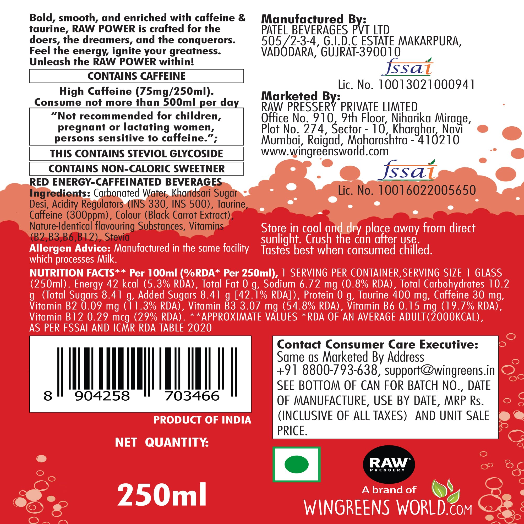 Raw Power Energy drink-Red Energy 250 ml (Pack of 6)