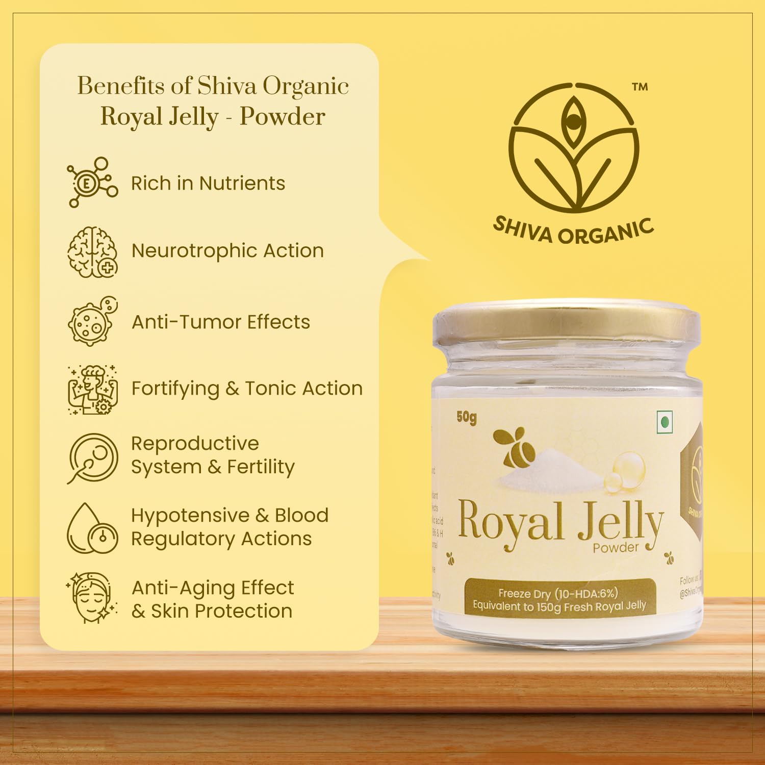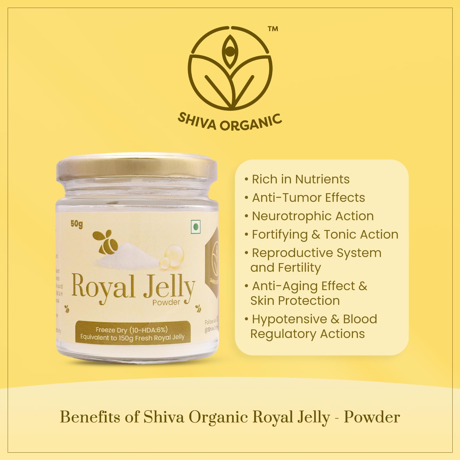 Shiva Organic Royal Jelly Powder 50g - Freeze Dry 10-HDA:6% I Immune Booster I High Minerals & Vitamins I Fertility Booster I Equivalent to 150g Fresh Royal Jelly