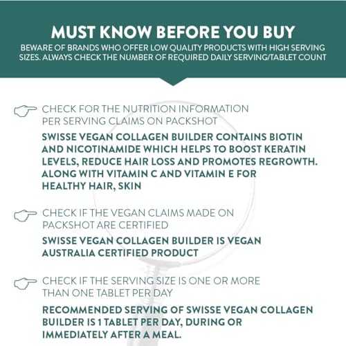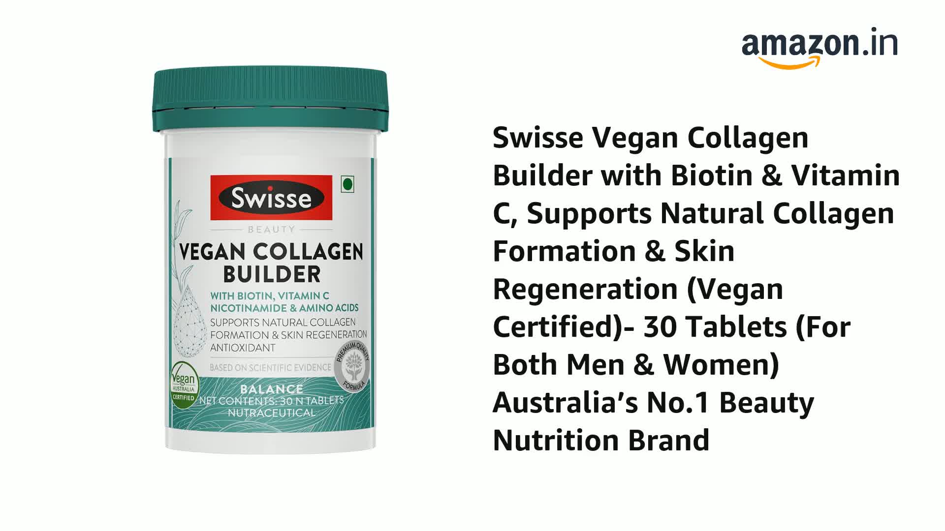 Swisse Vegan Collagen Builder with Biotin & Vitamin C, Supports Natural Collagen Formation & Skin Regeneration (Vegan Certified) - 30 Tablets (For Both Men & Women) Australia’s No.1 Beauty Nutrition Brand