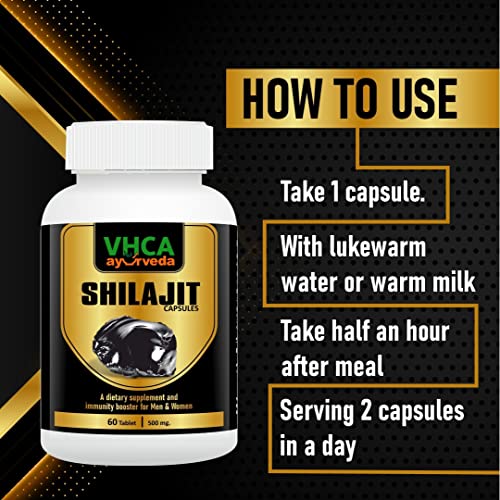 Shilajit Caps. help to provide strength and energy. These Shilajit Caps. helps to improve (joint s or Rheumatoid) problems related to Kapha ( and allergy) etc Shilajit Caps. serves as a dietary supplement to improve urine and bone- weakness etc. problems both in men and women and beneficial for providing improved .VHCA Shilajit Caps. contains 100% ayurvedic ingredients and These Shilajit Caps. help keep your body healthy and strong.