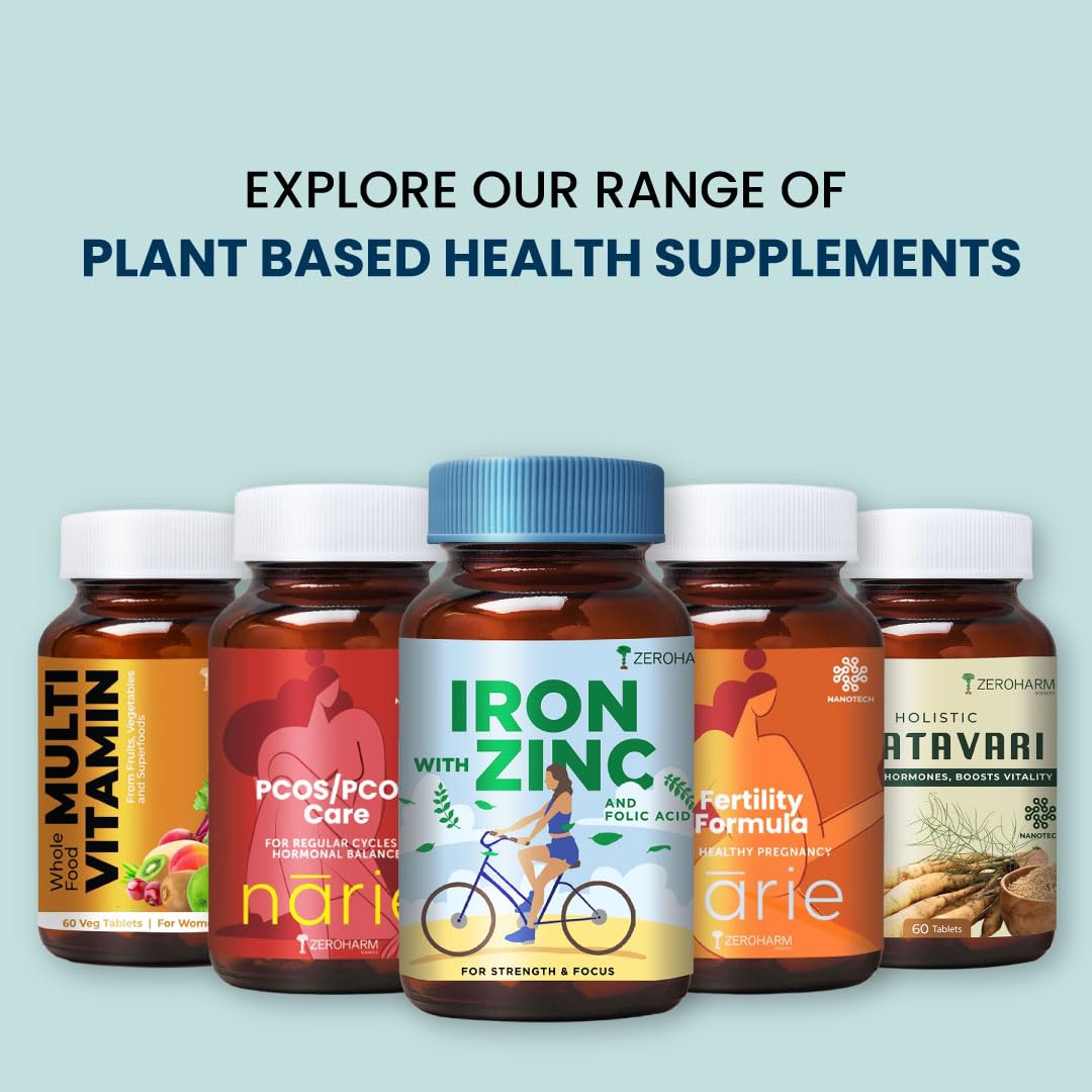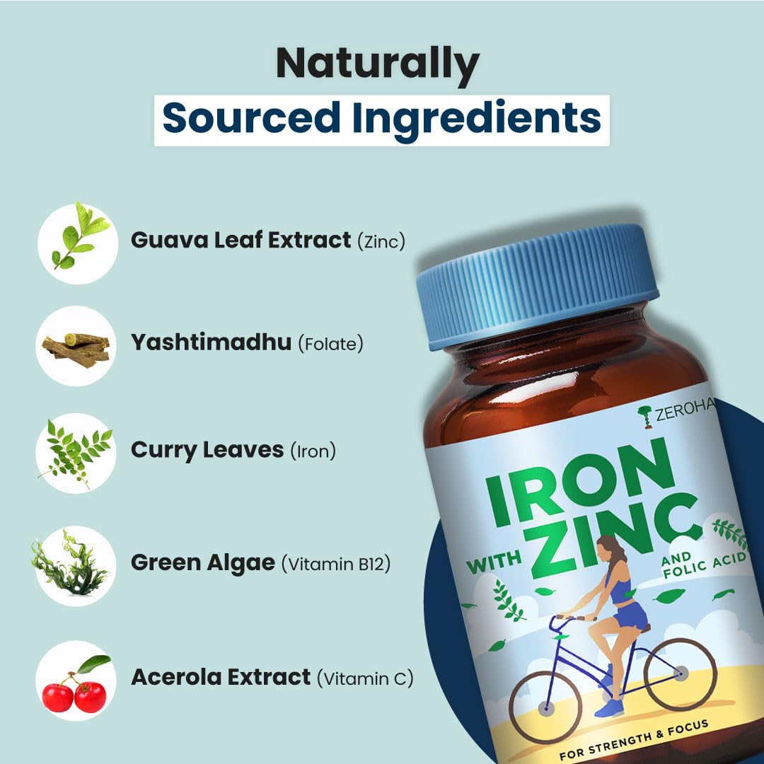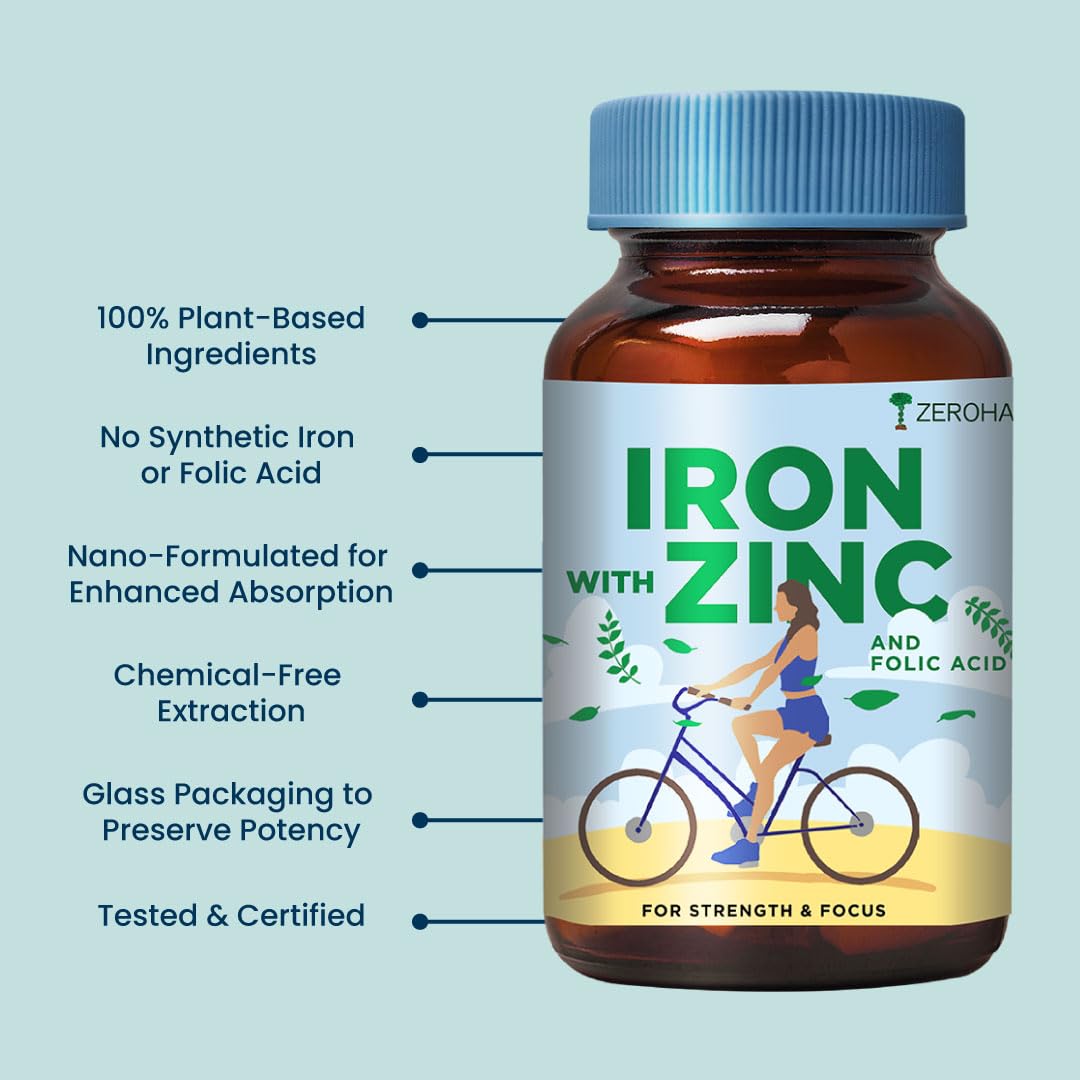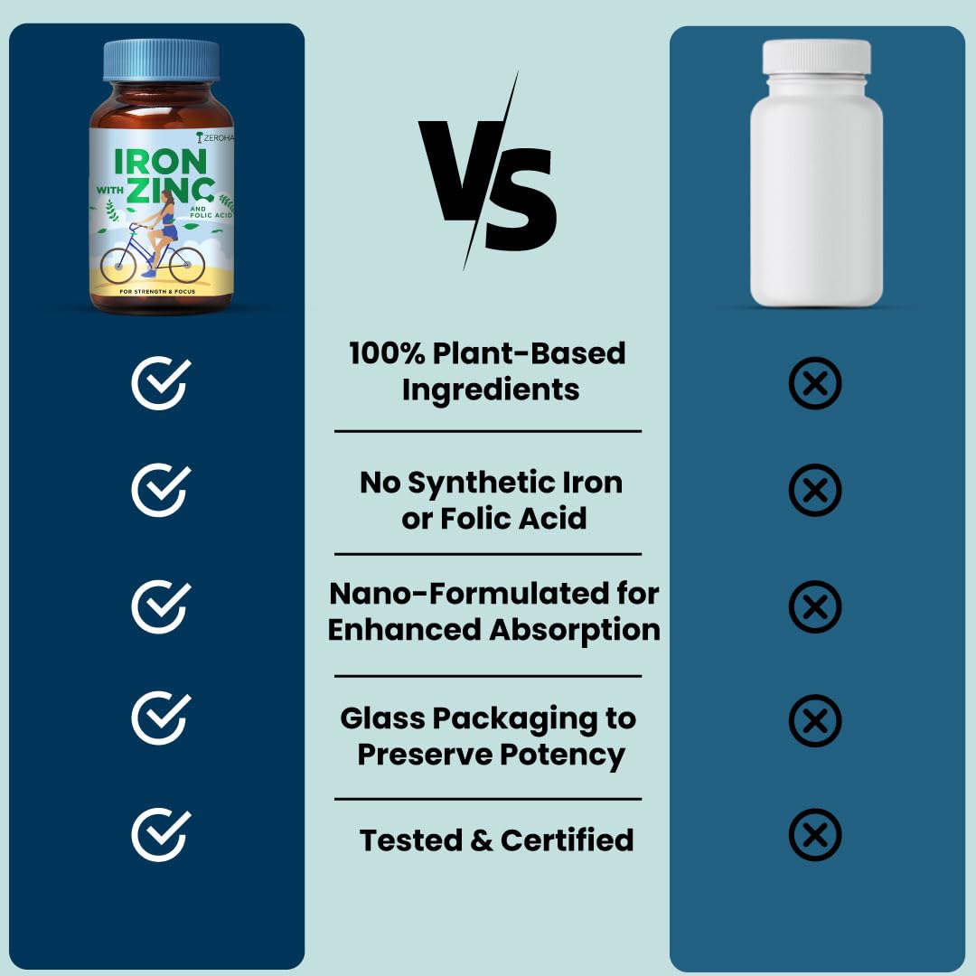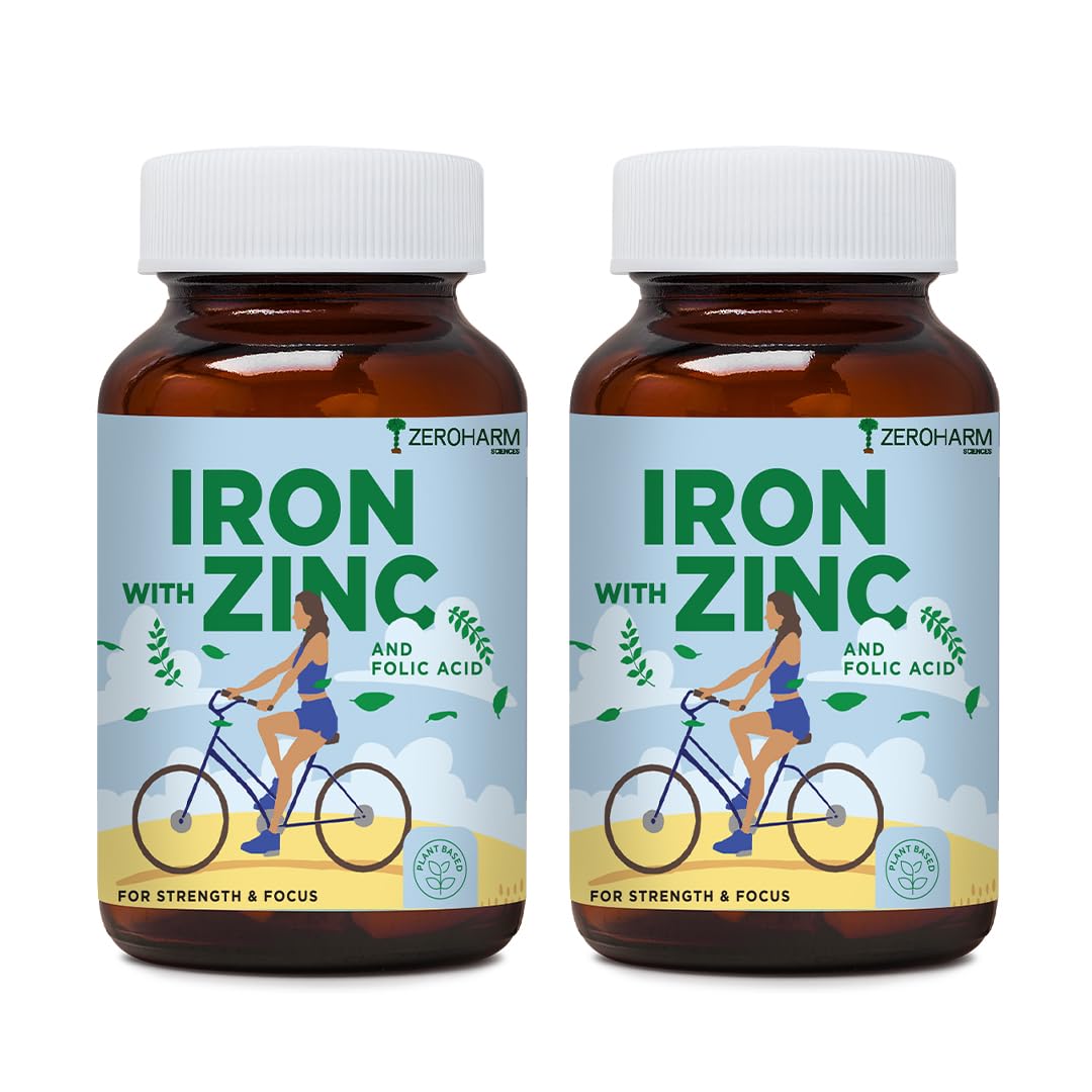 HomeHealth & PersonalDiet & NutritionHealth SupplementsZEROHARM Iron Zinc Folic Acid & B12 Tablets - Nano Formulated for High Absorption - Energy Immunity Skin Hair & Daily Wellness Support - Plant Based Supplement for Men Women - 60 Tablets - 2 Pack