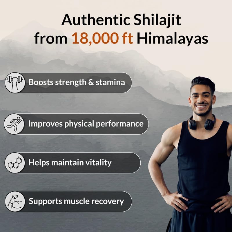 RICH IN FULVIC ACID: The Shilajit extract used in these tablets is sourced directly from the Himalayan region making it 100% pure and natural. Our Shilajit is rich in fulvic acid which plays a crucial role in bolstering energy levels. They also help in st