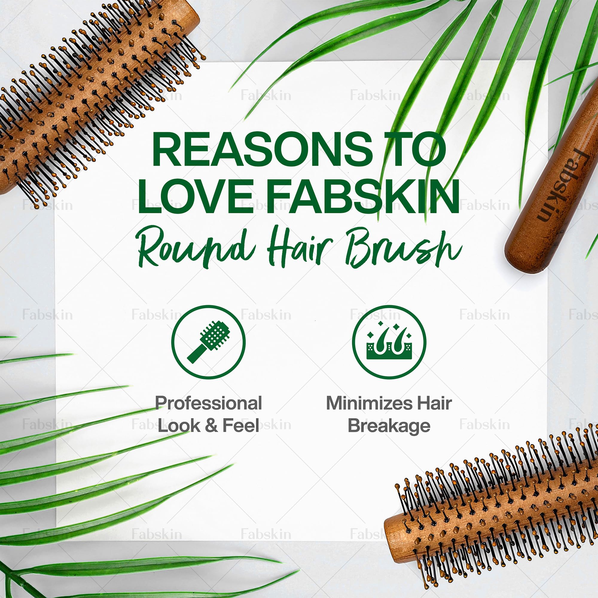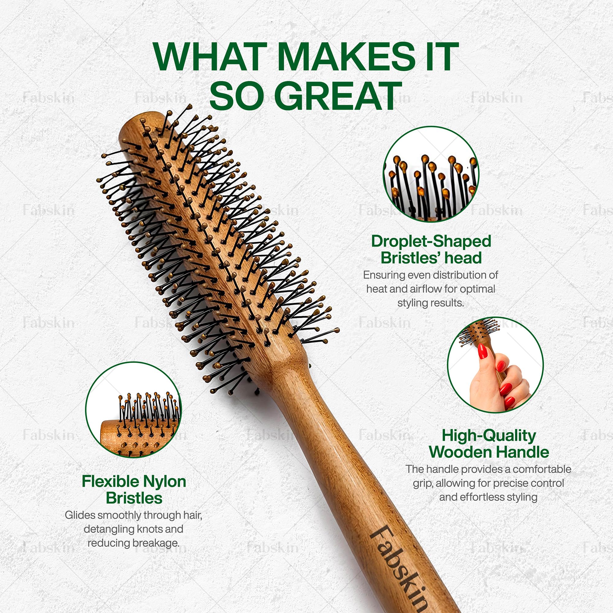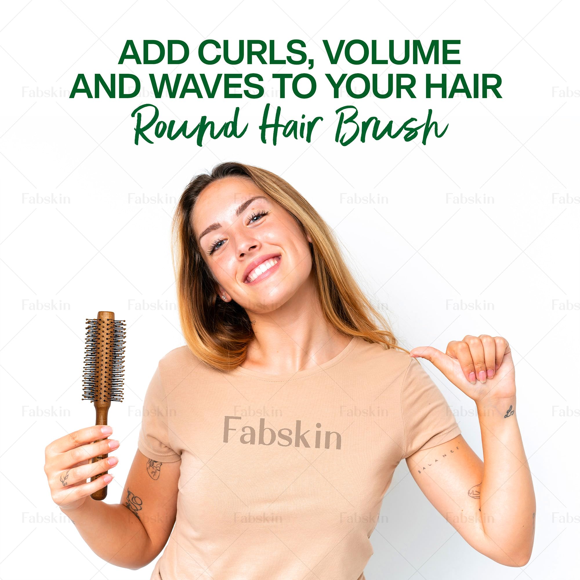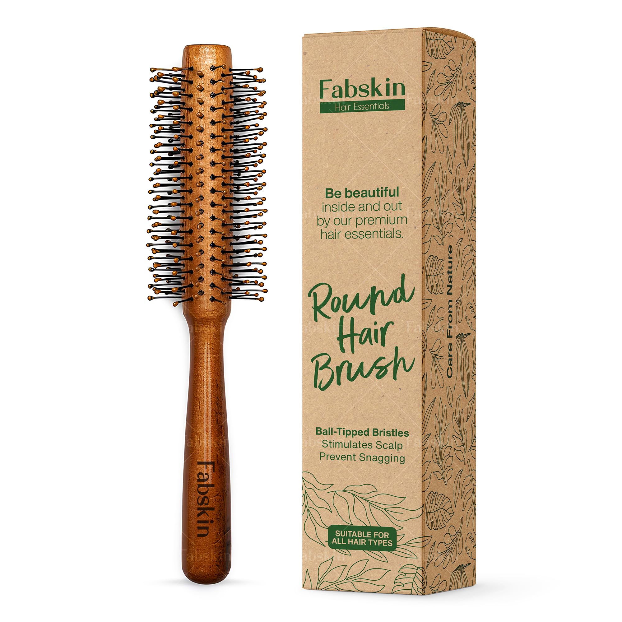 Fabskin Wooden Round Hair Brush | Men and Women | For Adding Curls Volume Waves Quick Blowout Straightening Curling Drying Volumizing Hairs & Scalp Massage | Hair Roller Brush for Hair Styling