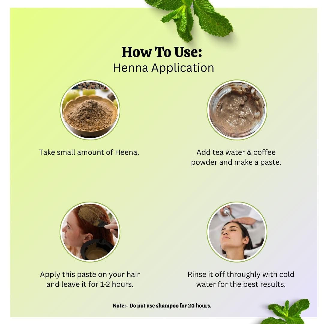 • The best way to use the Laam herbals heena powder is to mix it with tea water some coffee powder and for better results leave it for soak in an iron pan for 6 to 12 hours and then apply the paste on the hair after drying rinse off with normal water