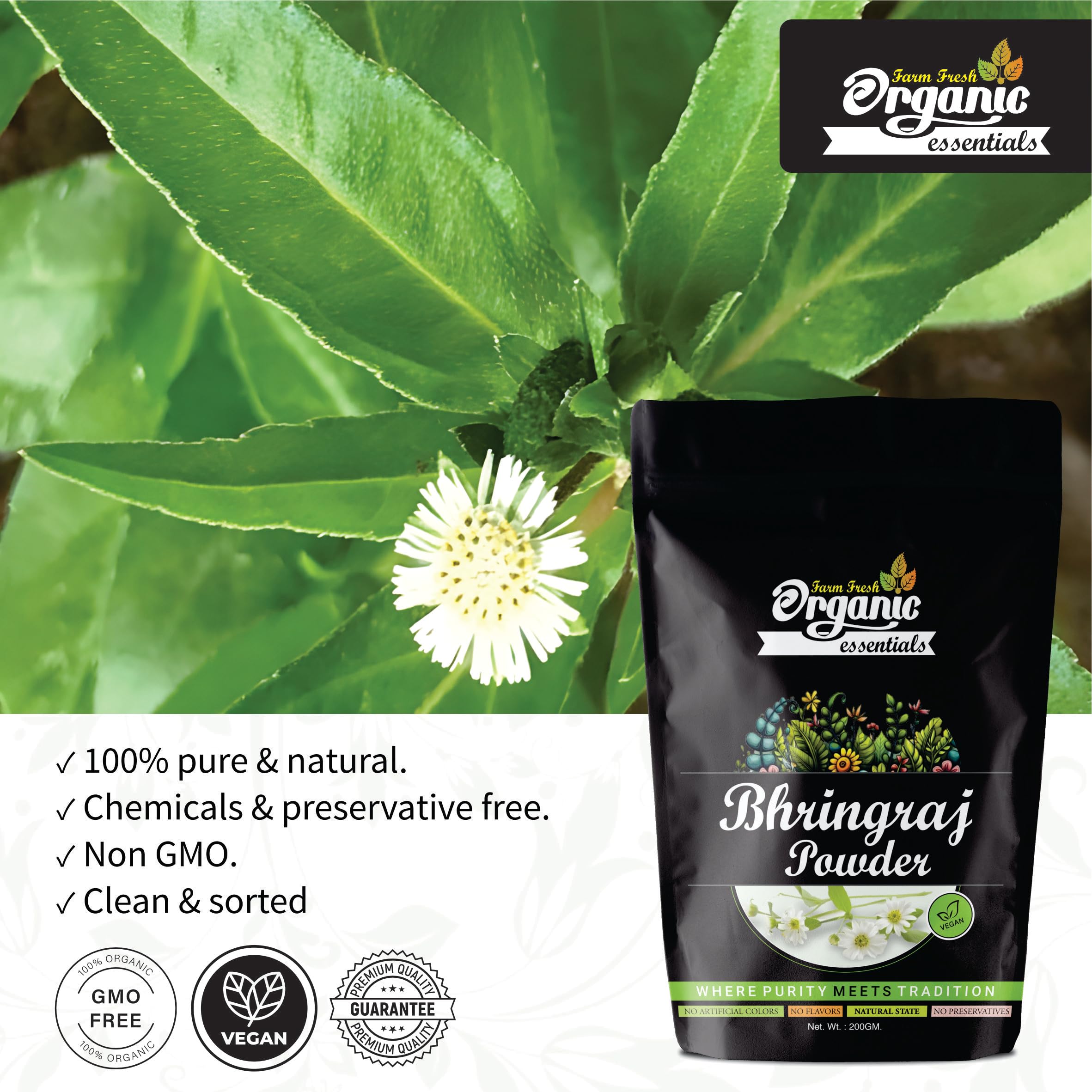 Organic Essentials Natural Bhringraj Powder for Hair 200g Pure Bhringraj Flower Powder for Natural Hair Color ChemicalFree Fresh Bhringraj Powder for Optimal Hair Benefits
