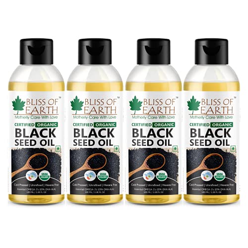 Bliss of Earth Certified Organic Black Seed Oil | Kalonji Oil | 4x100GM | Immune System Booster | Digestive Support | Great For Hair Health | Gluten Free | Cold Pressed | Unrefined | Hexane Free |