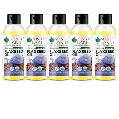 Bliss of Earth Certified Organic Flaxseed Oil | 5x100ML |100% Pure Plant Based Source of Omega's 36 & 9 | Cold Pressed | Haxene Free | Immune Support | Healthy Hair & Skin |