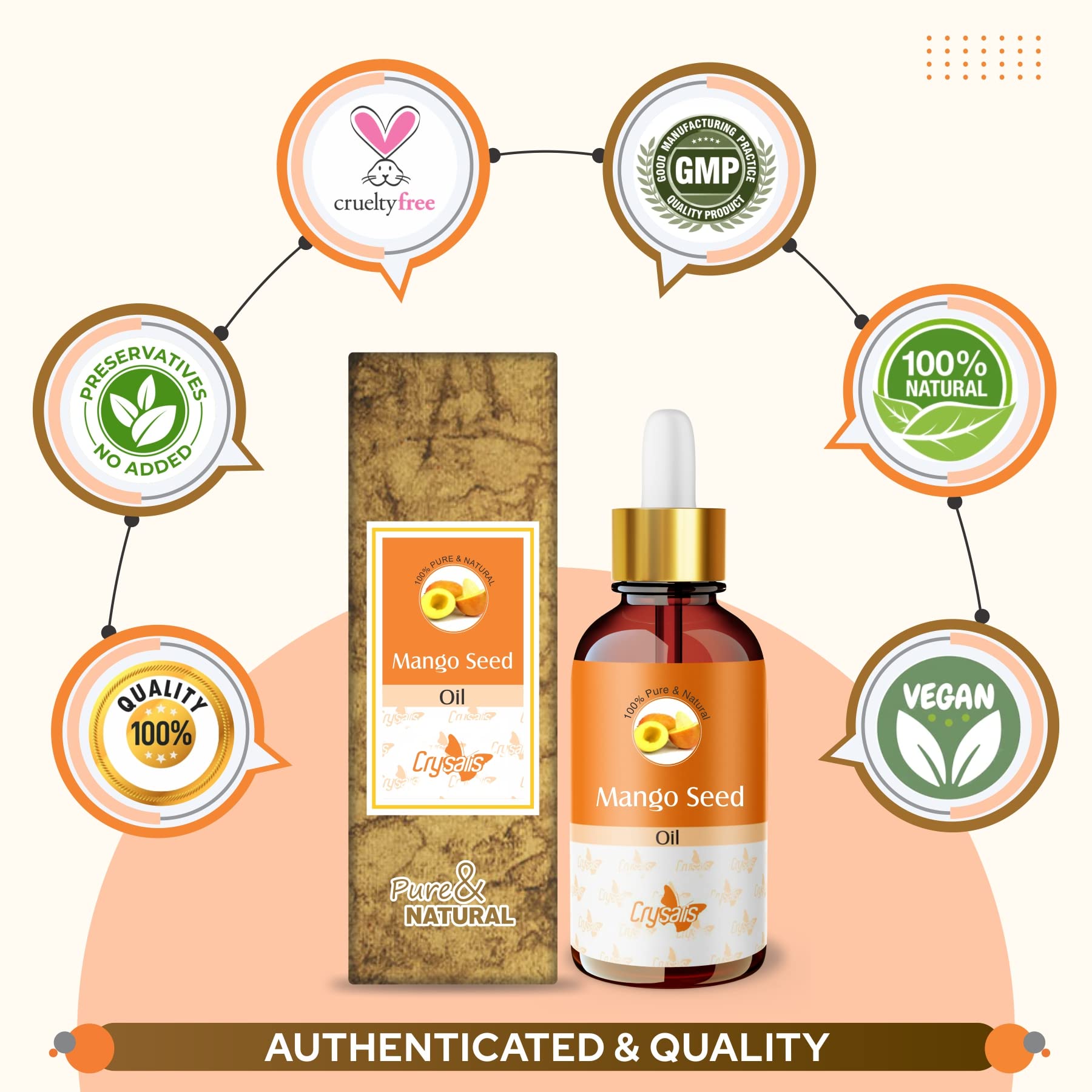 Crysalis Mango Seed (Mangifera Indica) |100% Pure & Natural Undiluted Carrier Oil Organic Standard/ Cold Pressed Seed Oil For Glowing Skin Healthy Hair Nourished Face - 15Ml With Dropper