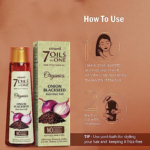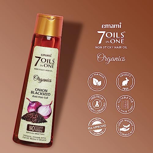 This product is marketed as 7 oils in one onion black seed oil and what not but don't go for these cheap marketing tricks it has paraffin, BHT, added fragrance 94% mineral oil, 4.54% vegetable oil(can be of palm, soya etc), and another chemicals, they can damage the hairs.