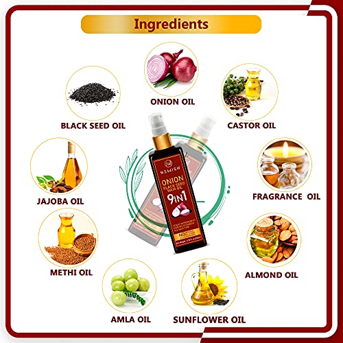 FEATURES: Best used for Hair Growth Anti-dandruff long hair hair fall sparseness or any sort of loss of hair: ordinary use constantly for min 30 days everyday use would begin giving positive outcomes. 9 of every 1 Newish onion dark seed hair oil is a non-