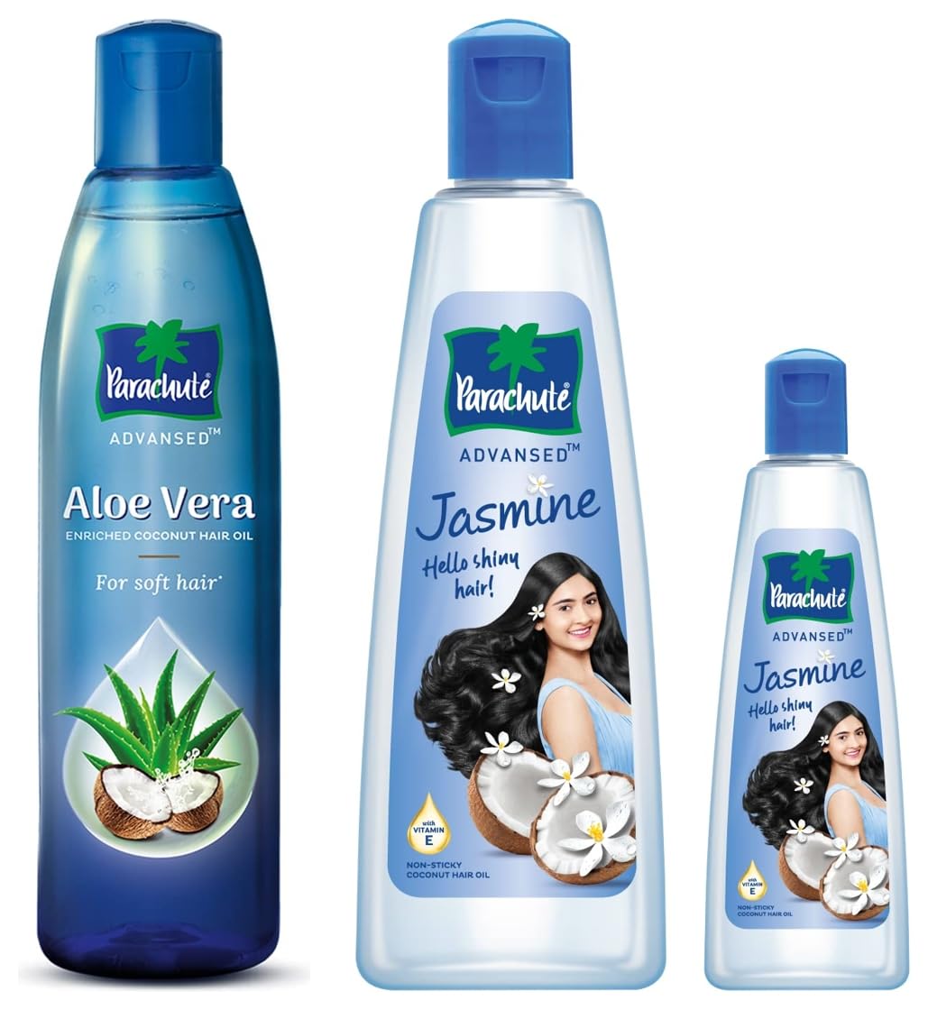 Parachute Advansed Aloe VeraEnriched Coconut Hair OilFor Soft & Strong Hair 400 mlThe product comes in safe package. The product will be an excellent pick for you.Parachute Advansed JasmineNon Sticky Coconut Hair OilFor ShinyStrong HairCoconut Hair Oil400 ml with Free 90 ml packIt's time for your hair to take the spotlight and bring out its shine! Coconut oil enriched with goodness of Vitamin E & jasmine extracts Parachute Advansed Jasmine coconut hair oil gives your hair the strength and nourishment it needs while leaving it soft silky and shiny. What's more this light non-sticky hair oil comes with the fragrance of jasmine for a soothing pleasant experience and Vitamin E which improves your scalp and hair health .Nourish your hair with this advansed hair oil to fight everyday damage and get a strong silky hair that shines all day long. For best results apply parachute advanced jasmine coconut hair oil in the night and wash it off in the morning. That gives the oil time to go deep into the roots and nourish your hair from within. And the best part of this advansed hair oil is that it is so light and non-sticky that it's perfect to lightly apply in your hair after a hair-wash. This advansed hair oil is just the recipe for your hair that looks nourished and endures a healthy shine all day long.