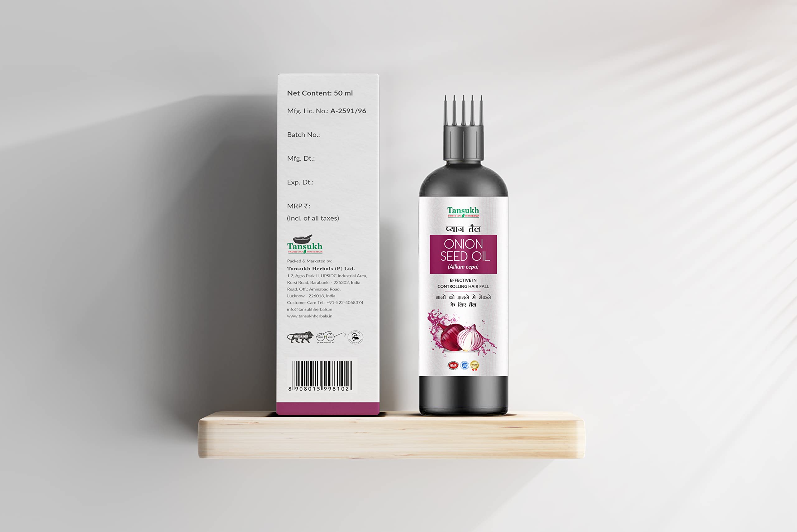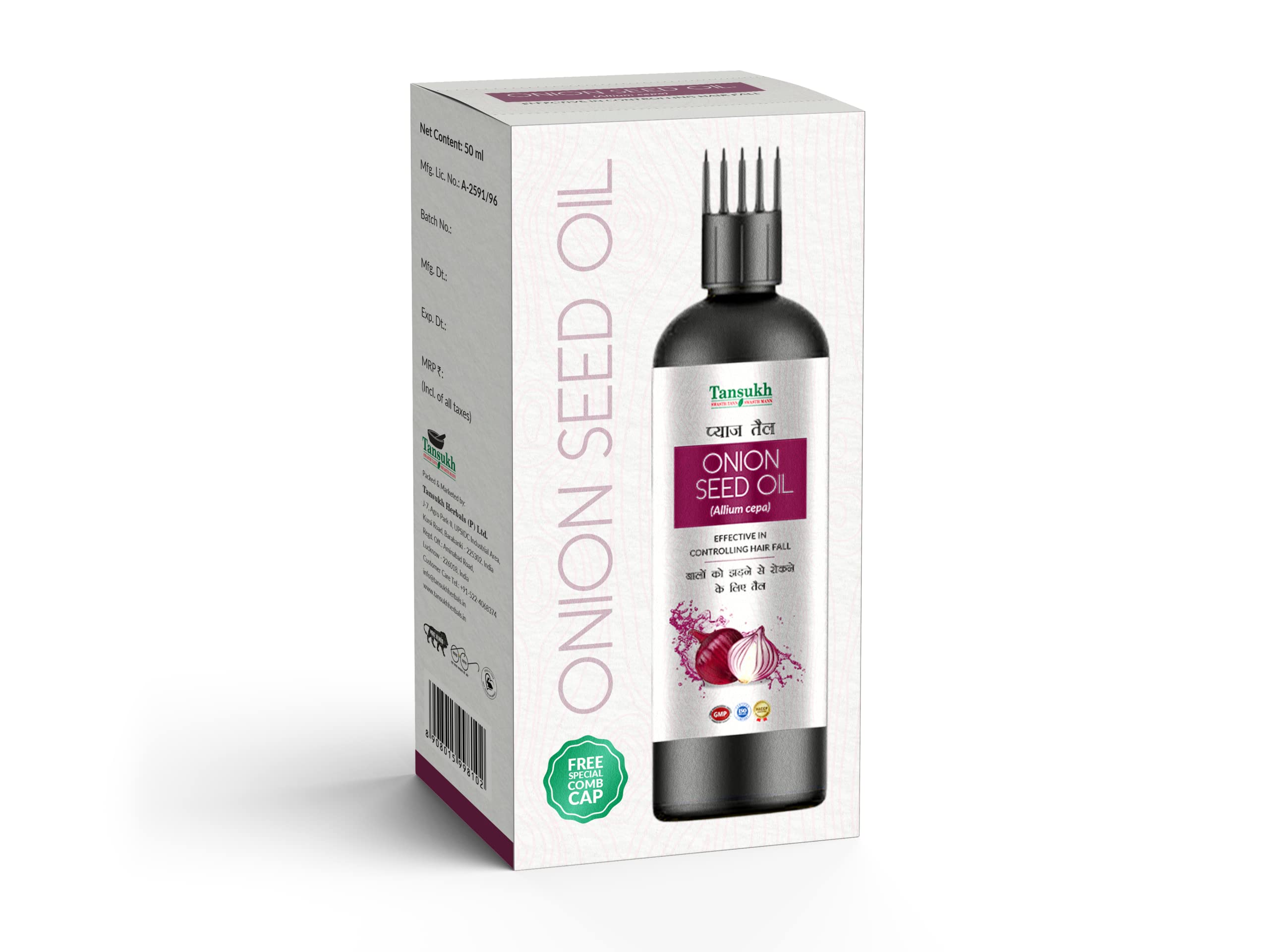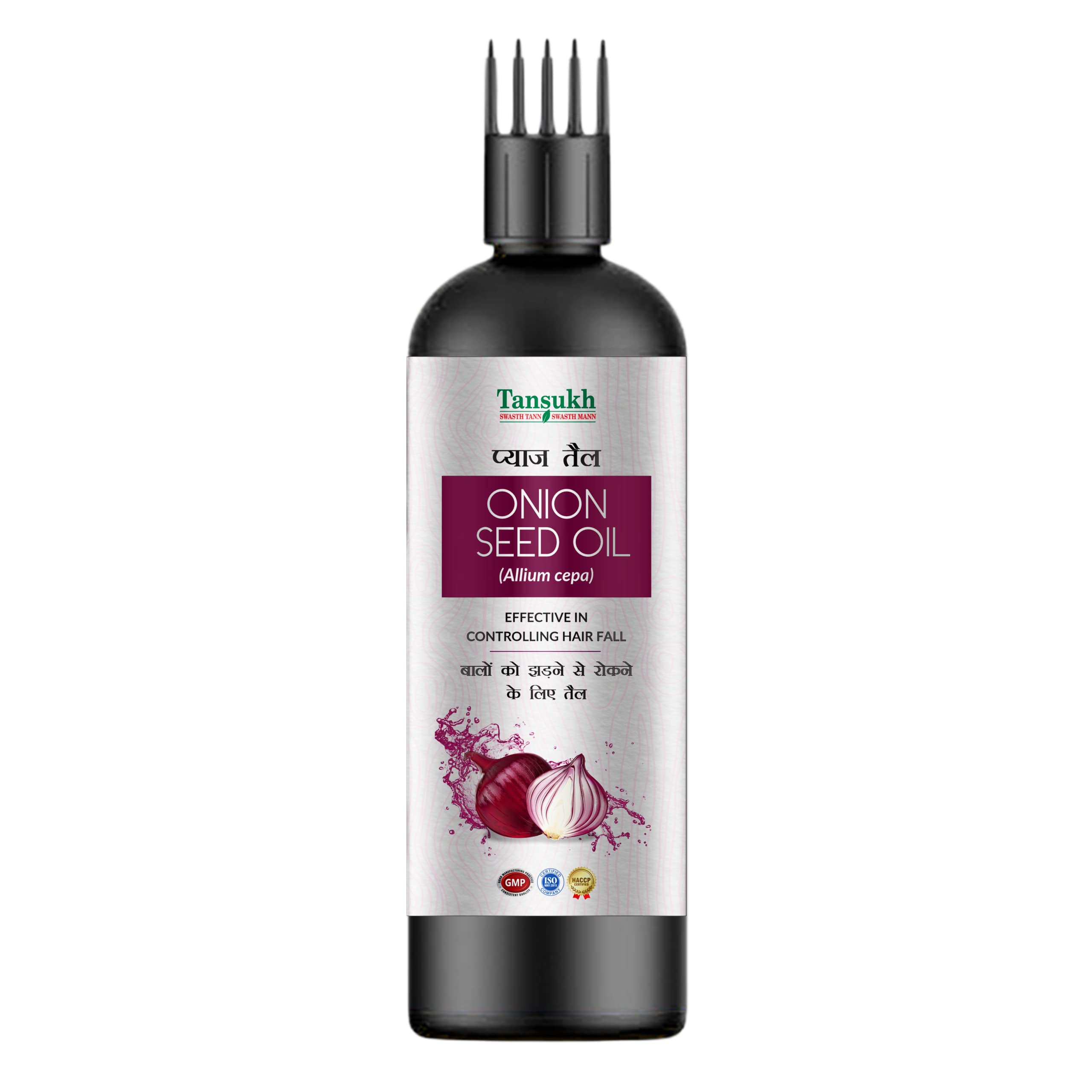 Tansukh Onion Seed Oil 50ml | Natural Onion Hair Oil for Hair Growth Hair Fall & Strength | Onion Seed Extracts Oil | Free Comb Cap for easy use