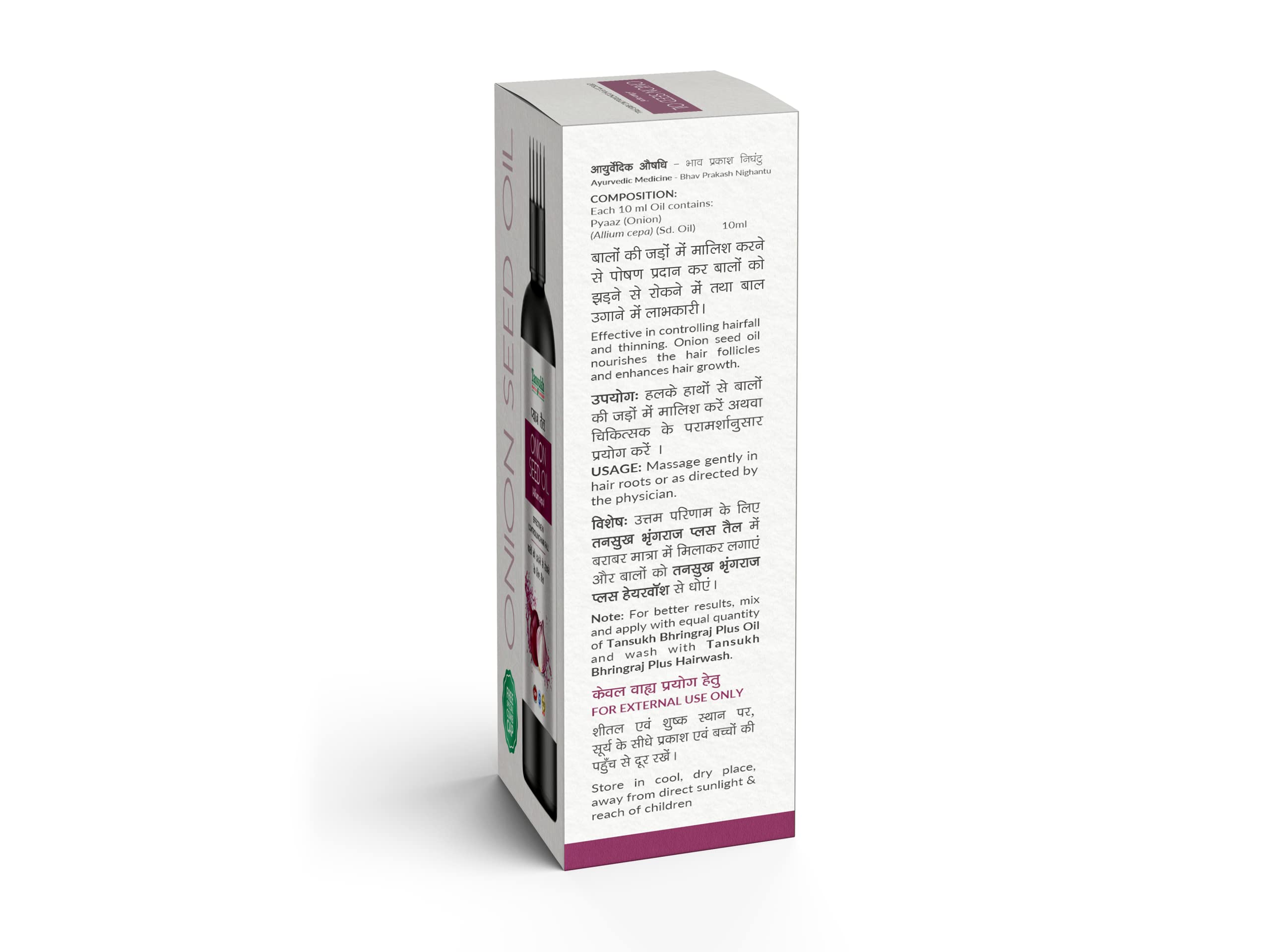 Tansukh Onion Seed oil is a non-sticky Natural Hair Oil non-greasy for silkier & stronger hair and with its fast absorption makes it perfect for hair growth. It can be used for scalp treatment also.
