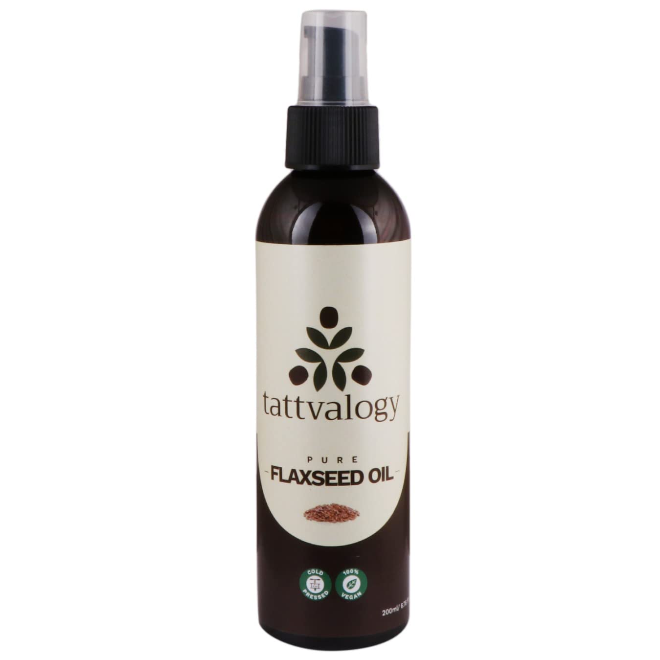 Tattvalogy Pure Flaxseed Oil - 200 ML | Linseed | Alsi Ka Tel | 100% Pure and Natural | Cold Pressed Carrier Oil For Healthy Hair Skin Care Skin Moisturizing Eyelash & Nails | In Glass Bottle