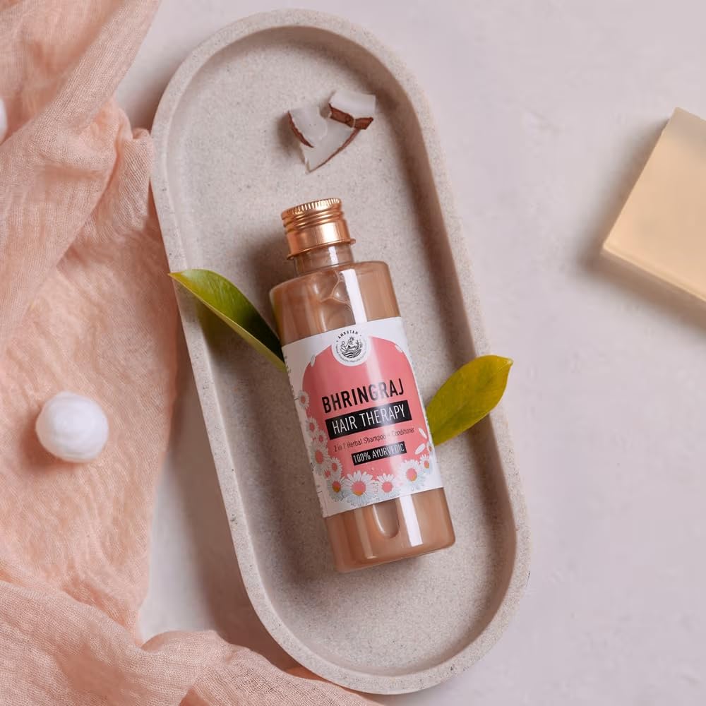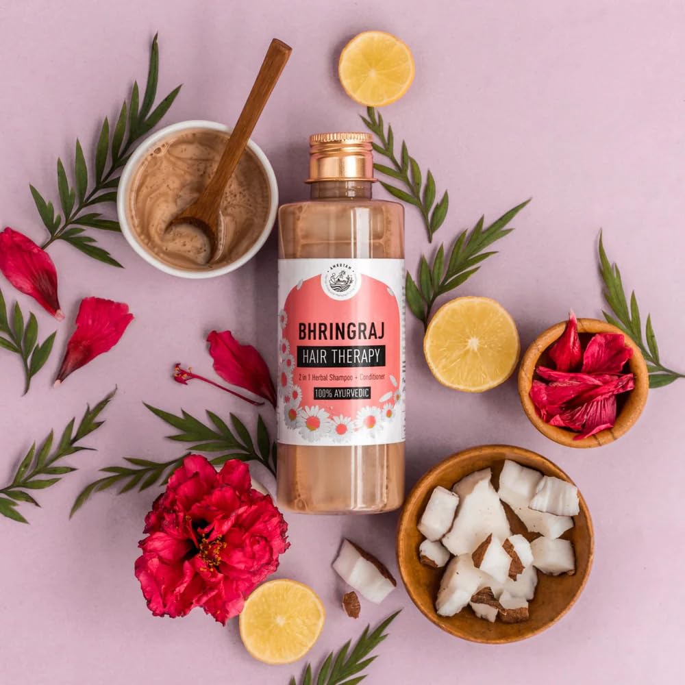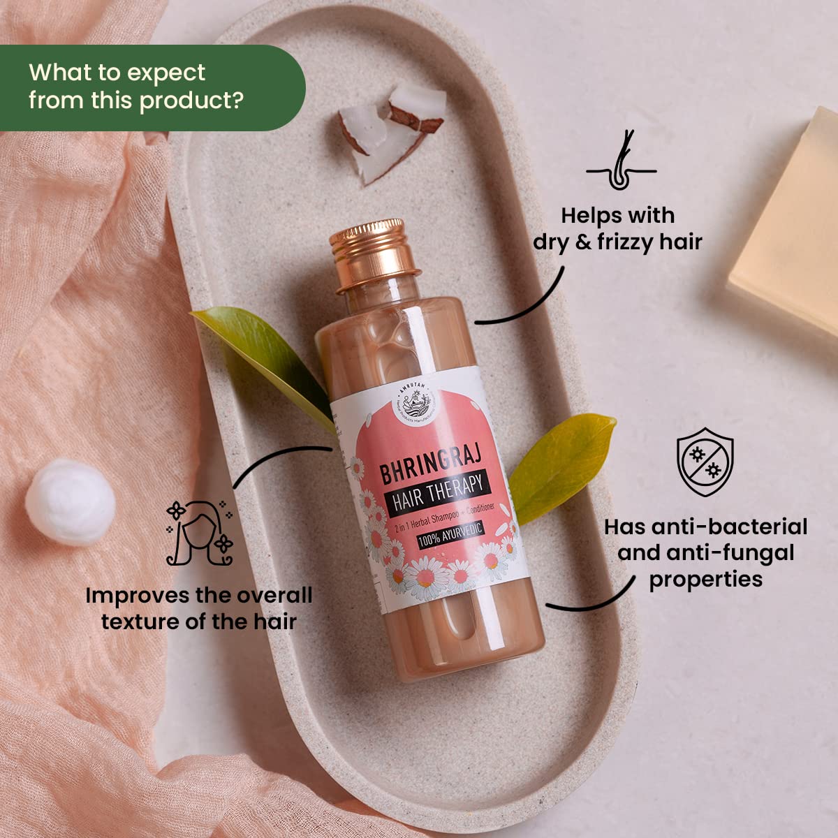 AMRUTAM Bhringraj Hair Therapy- 2 in 1 Herbal Shampoo and Conditioner with Bhringraj Reetha Shikakai Triphala & Brahmi | Ayurvedic Shampoo | Paraben & Sulphates free (200 ML)