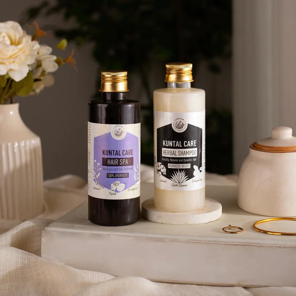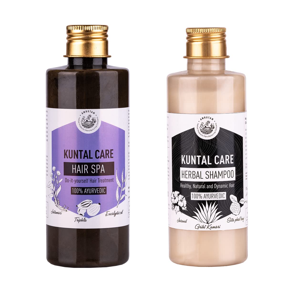 AMRUTAM Kuntal Care Hair Spa & Shampoo Combo | 2-in-1 Hair care bundle | Complete Hair Care Solution with Eucalyptus oil Triphala Balchhad and Bhringraj | Promotes Hair Growth